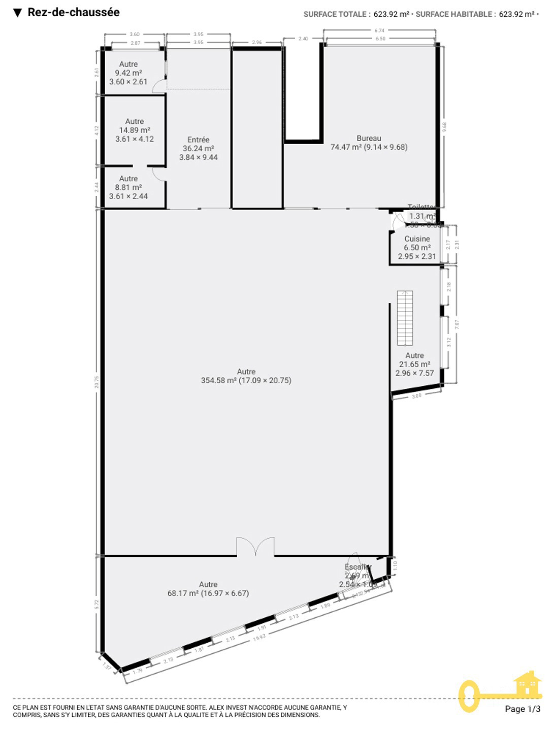 - Superficie généreuse (+- 600m²) idéale pour commerce, showroom, espace de stockage, bureaux ...