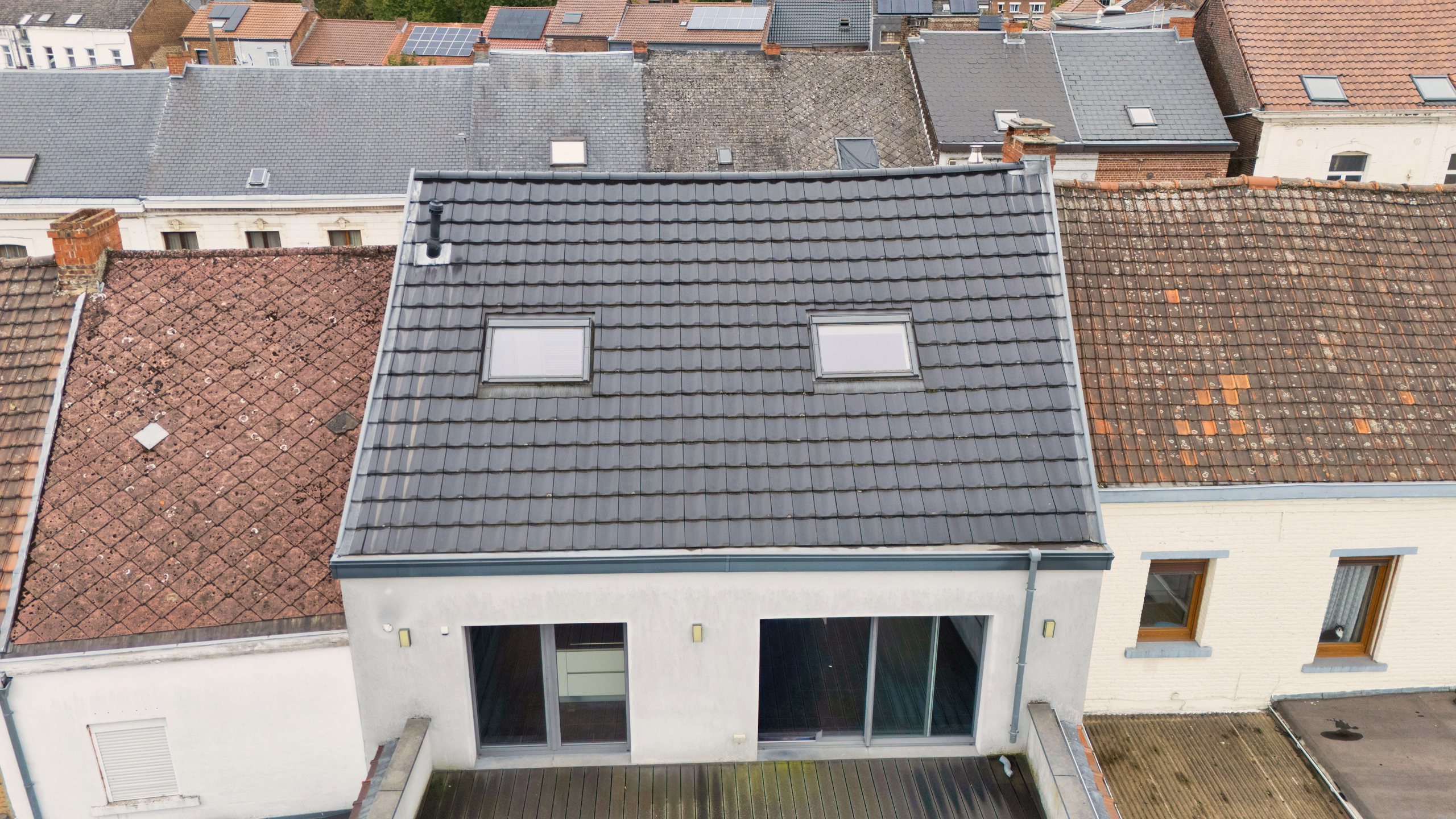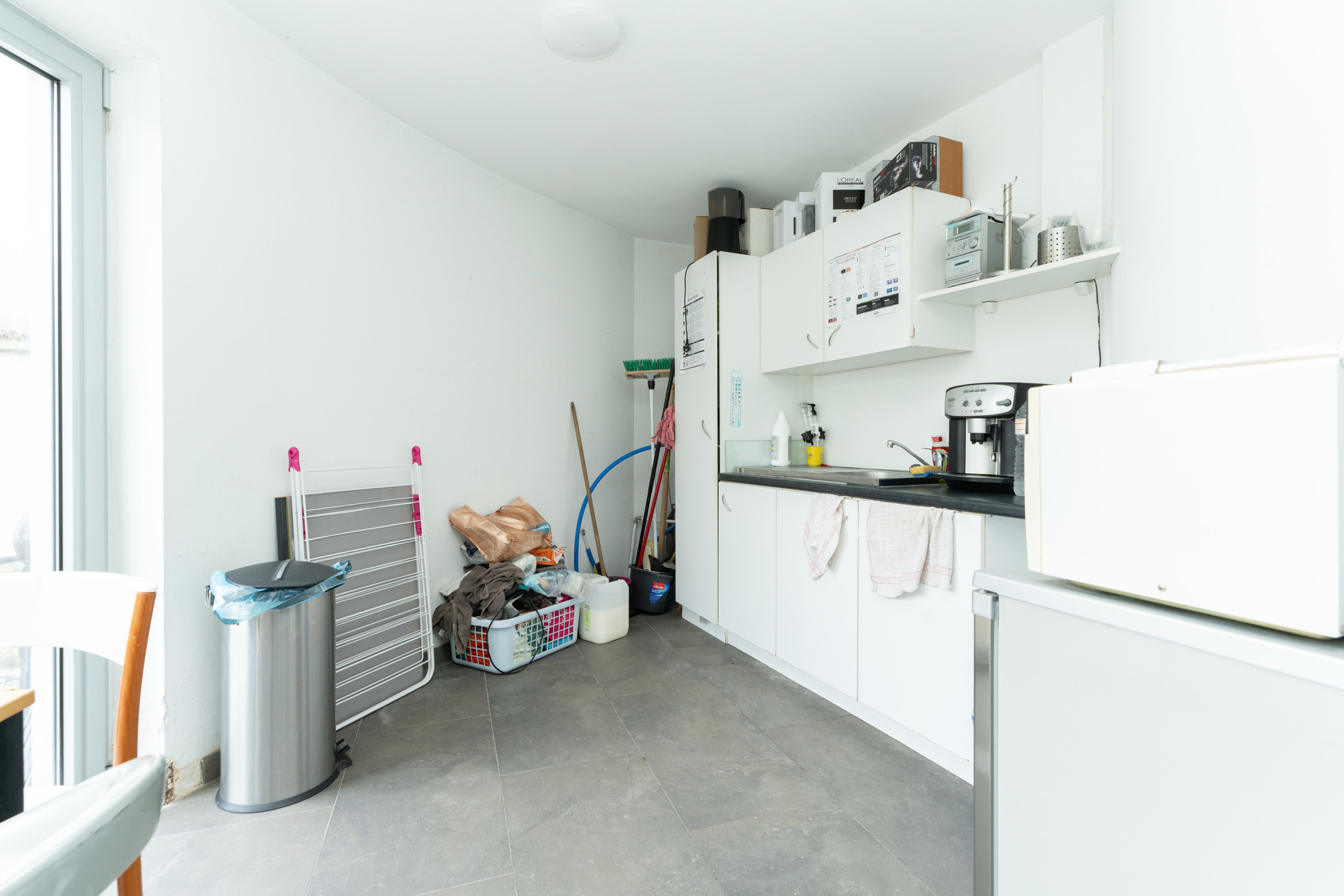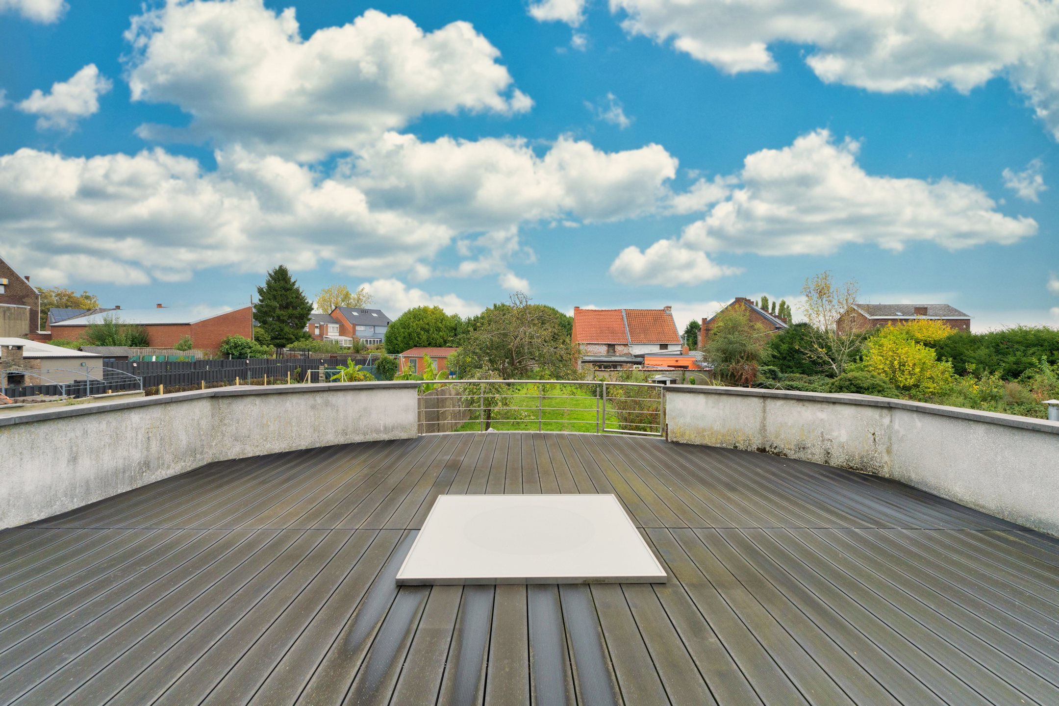 => Appartement (entrée séparée) : À l’étage, un vaste hall d’entrée avec WC séparé, une spacieuse pièce de vie de ±53 m², dotée d’une cuisine ouverte entièrement équipée avec îlot central. Cette pièce donne accès à une magnifique TERRASSE, idéale pour profiter de moments de détente.