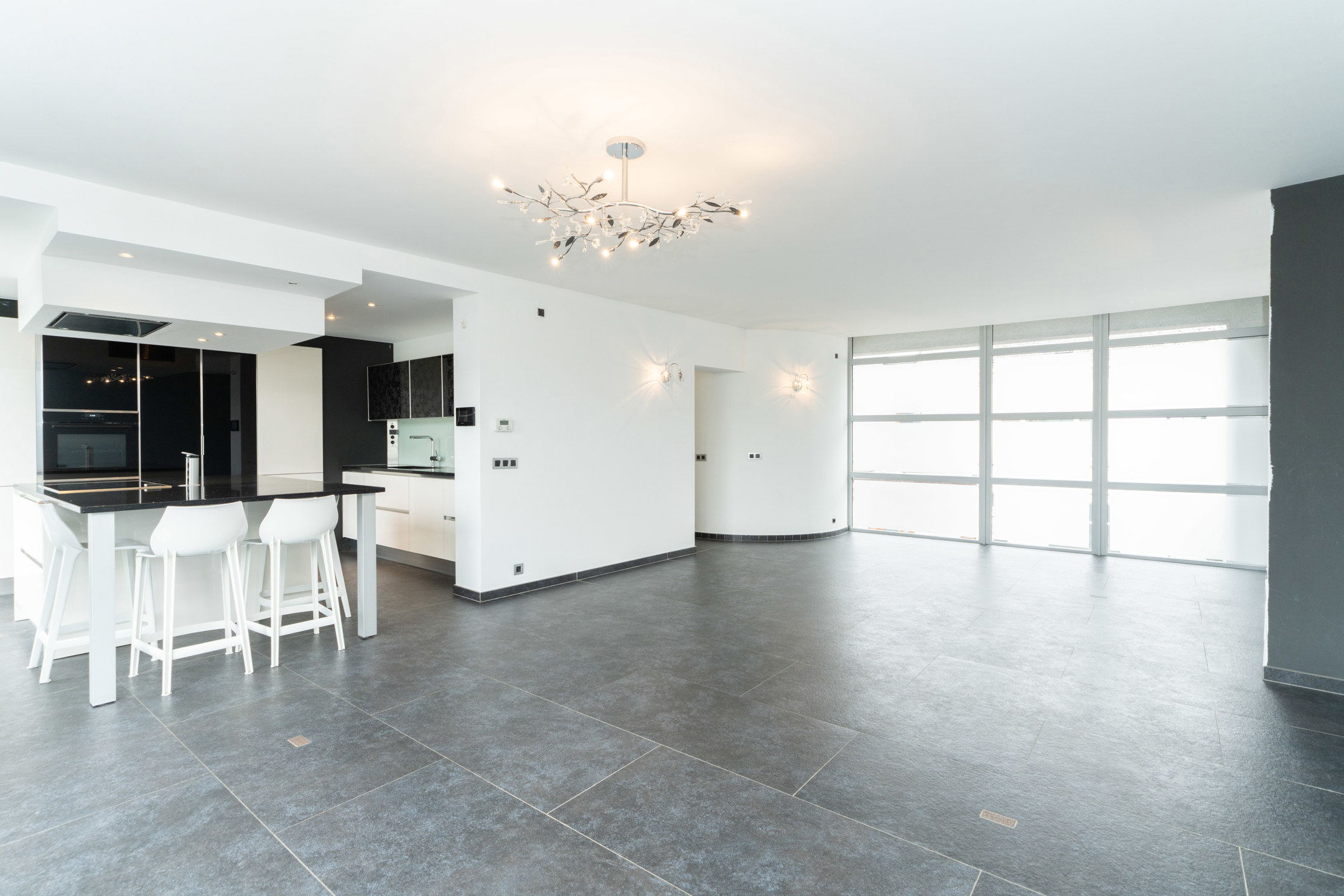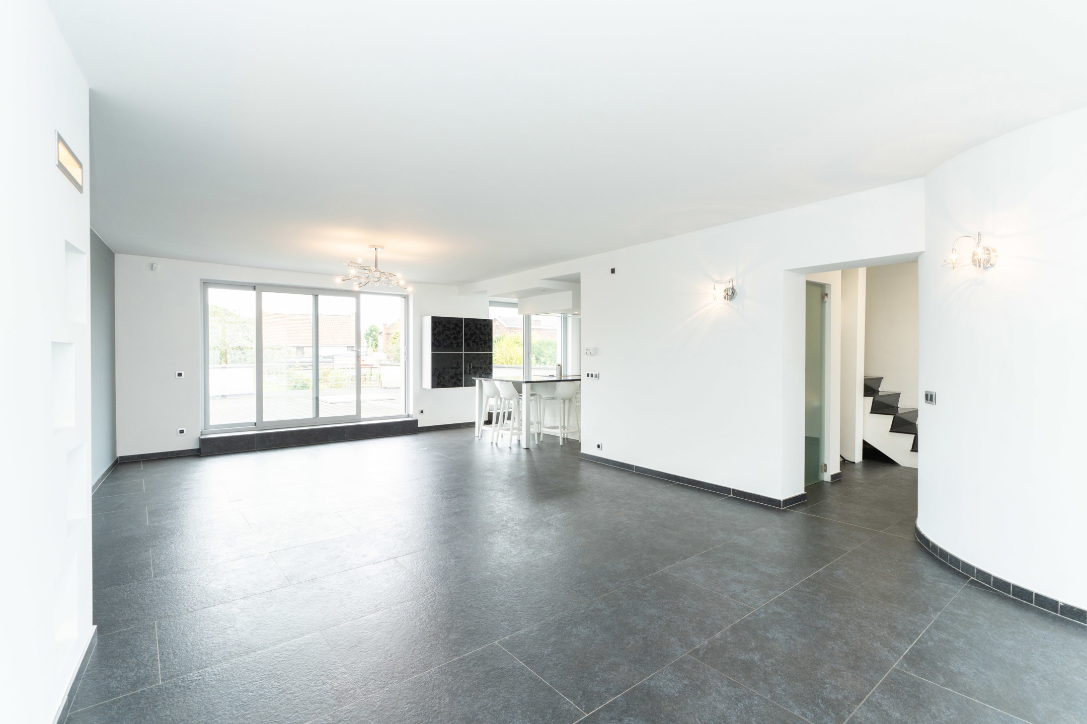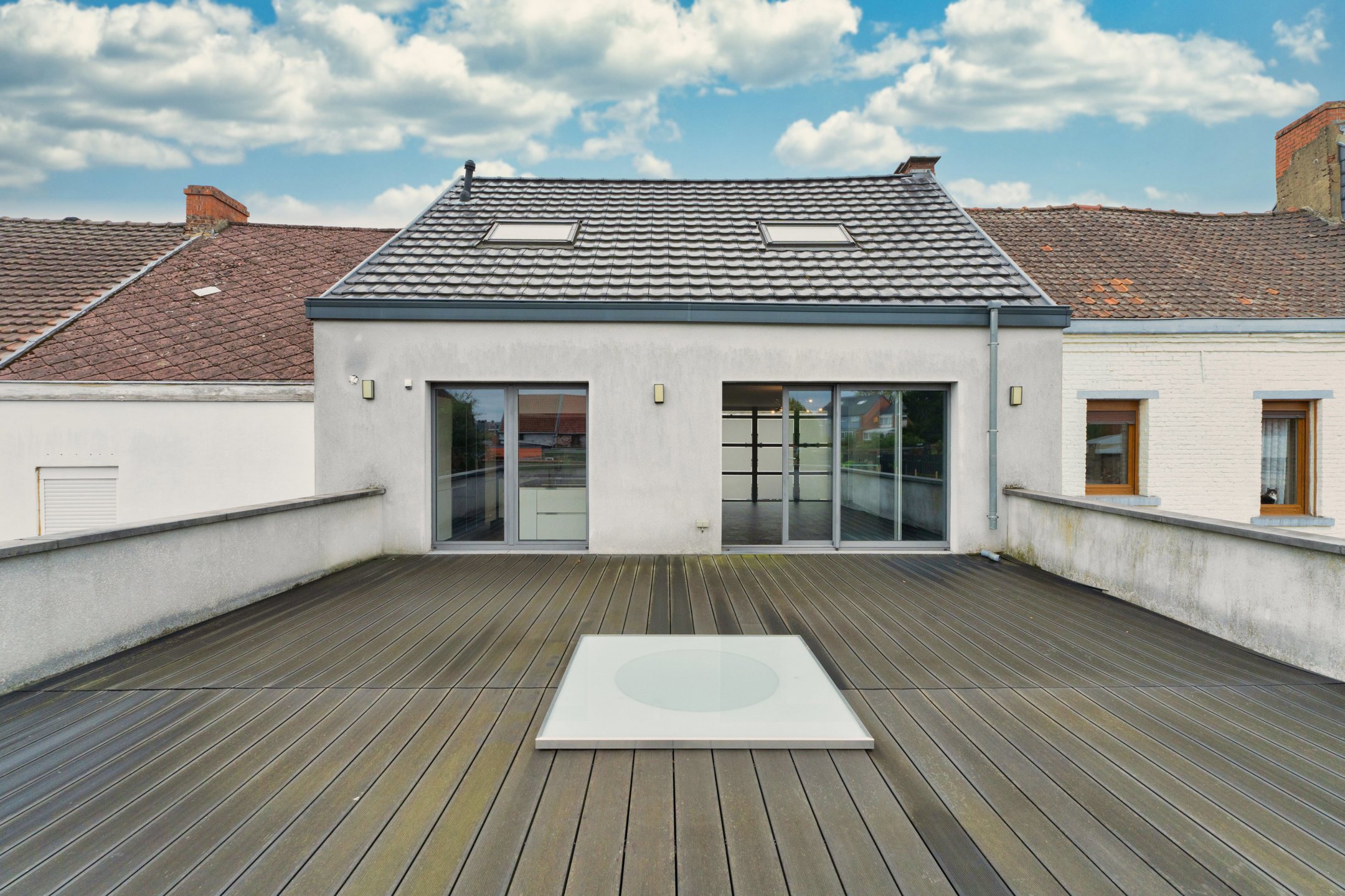 => Appartement (entrée séparée) : À l’étage, un vaste hall d’entrée avec WC séparé, une spacieuse pièce de vie de ±53 m², dotée d’une cuisine ouverte entièrement équipée avec îlot central. Cette pièce donne accès à une magnifique TERRASSE, idéale pour profiter de moments de détente.