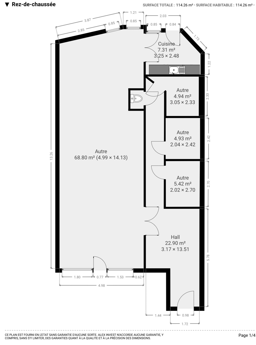 => Rez-de-chaussée de +/- 115m2 : celui-ci accueille un magnifique espace commercial d’environ 70 m², bénéficiant d’une excellente visibilité. Il s’ouvre sur une grande TERRASSE et un agréable JARDIN, parfaits pour diverses activités. Vous y trouverez également une cuisine, un hall avec espace de rangement, trois pièces actuellement utilisées pour un banc solaire, ainsi qu’un WC séparé. Ce niveau dispose de deux entrées distinctes, permettant la création de deux commerces indépendants si souhaité.