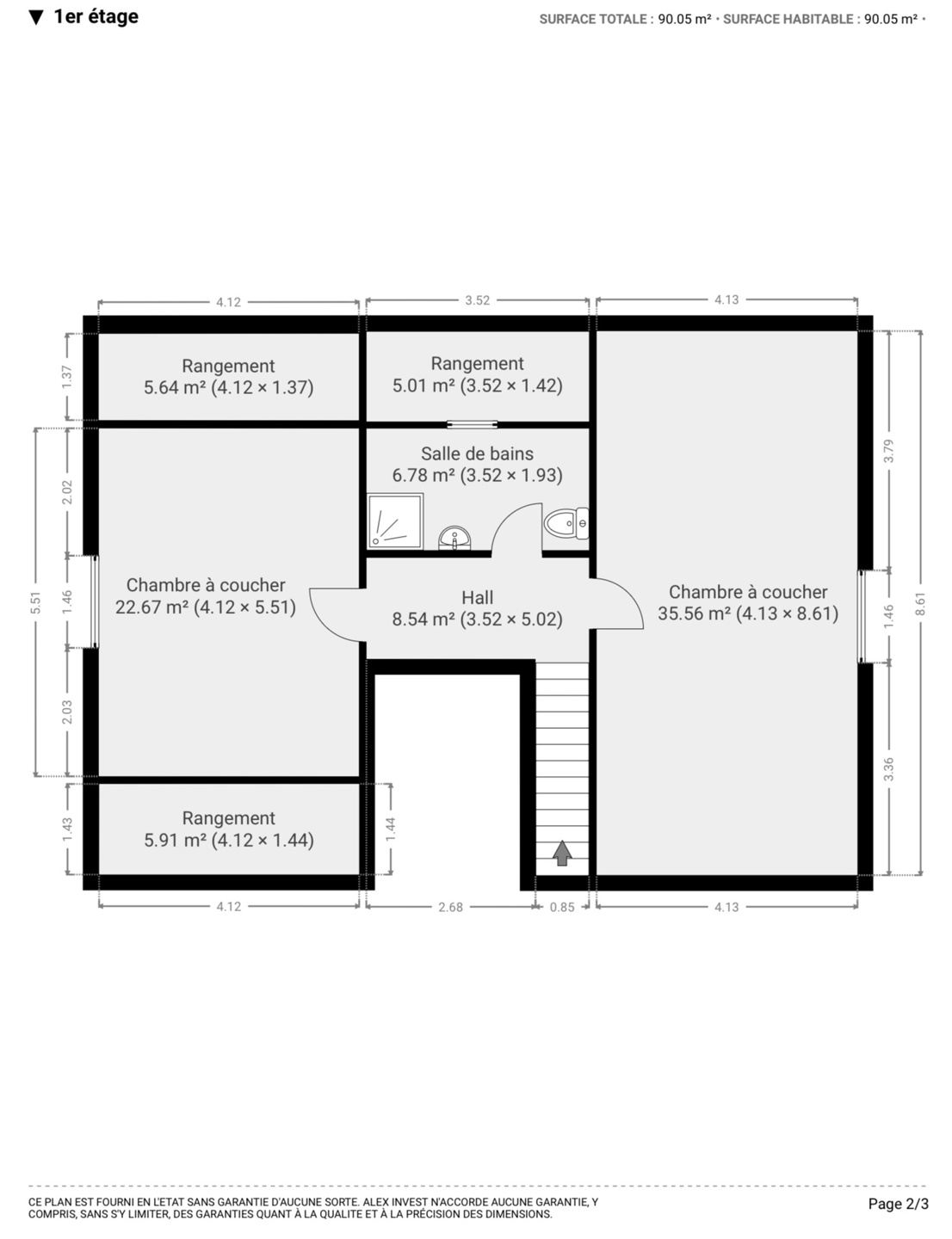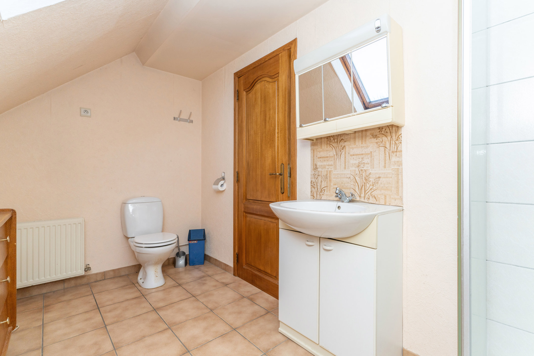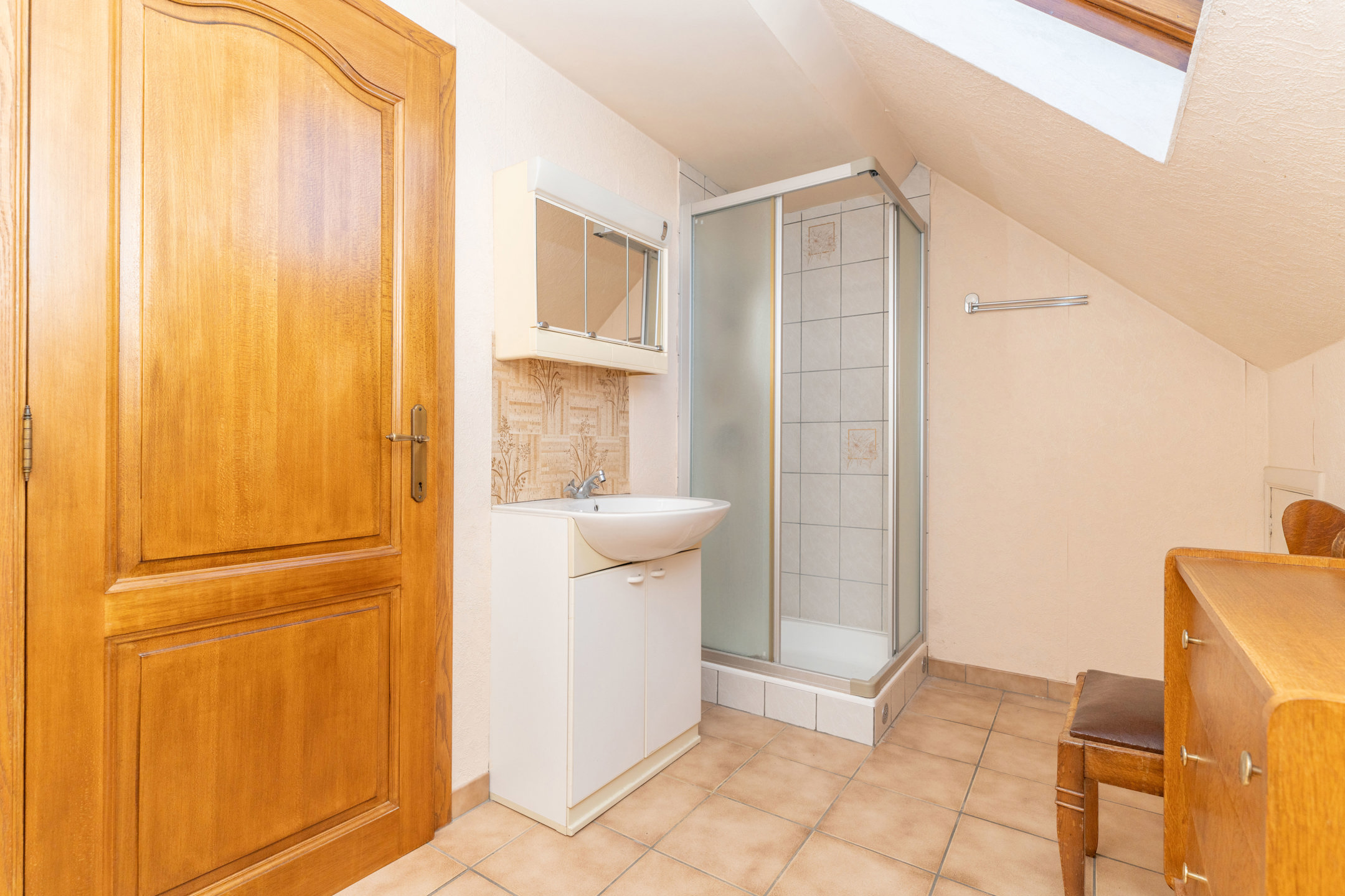 => À l’étage, le hall de nuit mène à une chambre spacieuse de ± 23 m² avec espace de rangement, une salle de douche avec WC, ainsi qu’une grande pièce de ± 36 m² à aménager selon vos envies — possibilité de créer deux chambres supplémentaires ou un bel espace polyvalent.