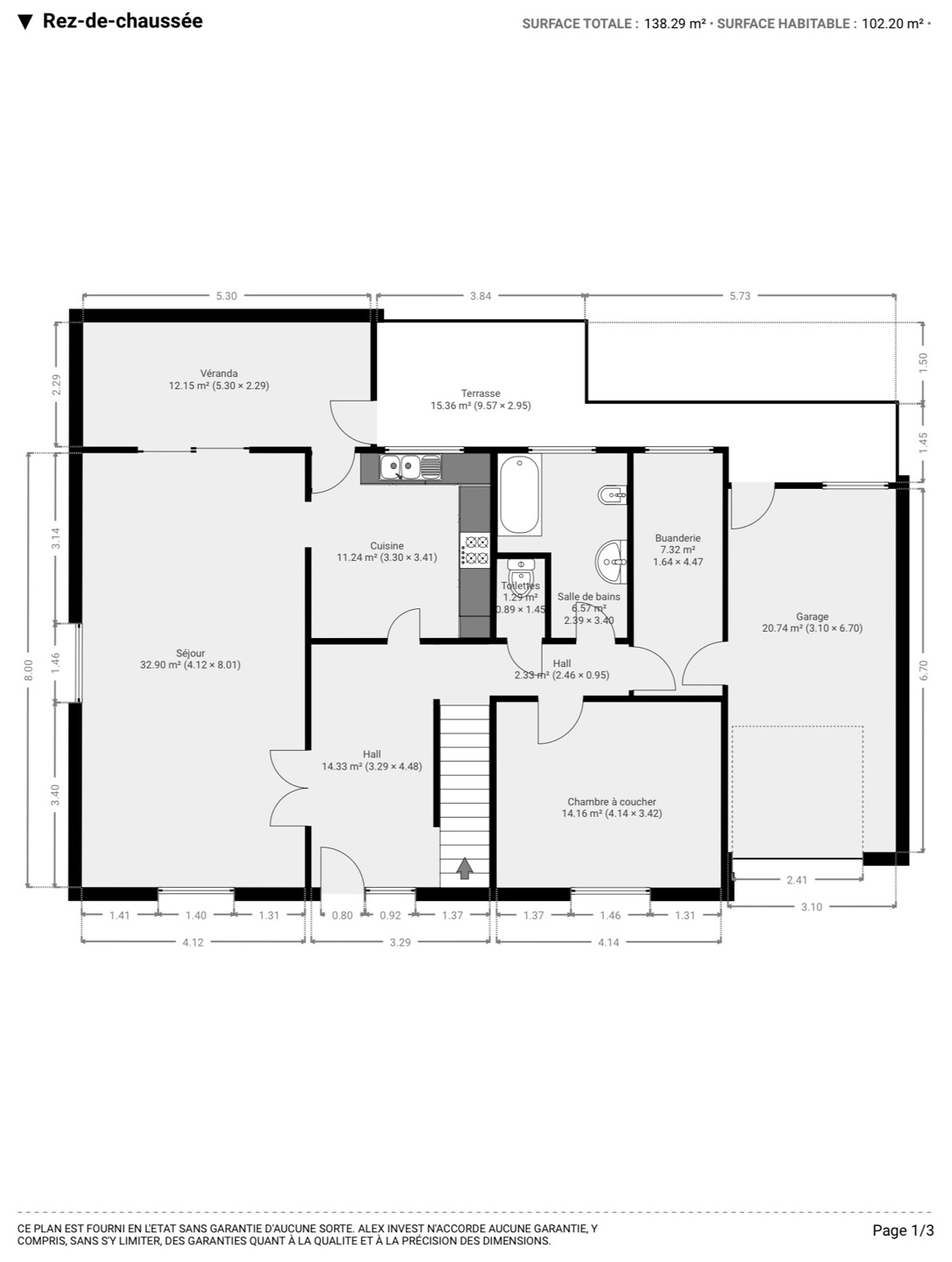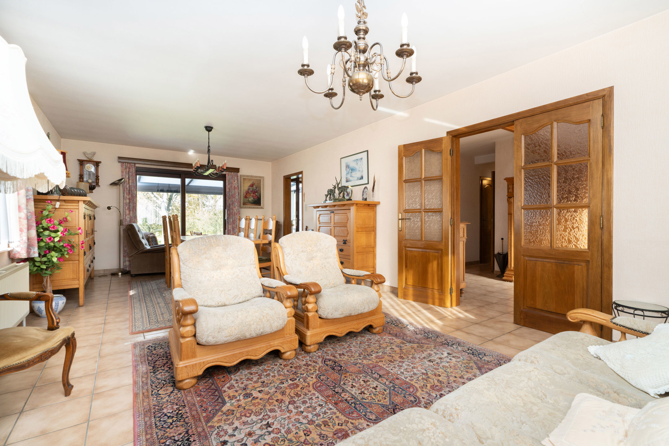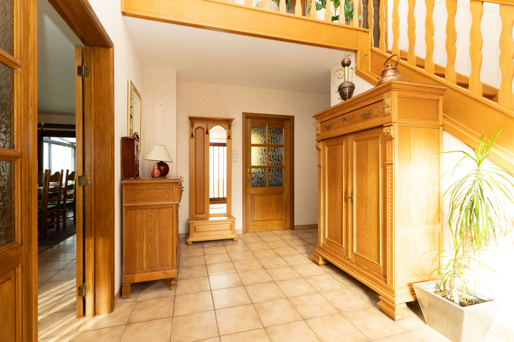 => Le rez-de-chaussée s’ouvre sur un grand hall d’entrée avec mezzanine, menant vers un séjour lumineux de ± 33 m², une cuisine équipée avec espace dinatoire et une agréable véranda ouverte sur le jardin. Un hall secondaire dessert un WC séparé, une chambre de ± 14 m², une salle de bain, une buanderie et un GRAND GARAGE.