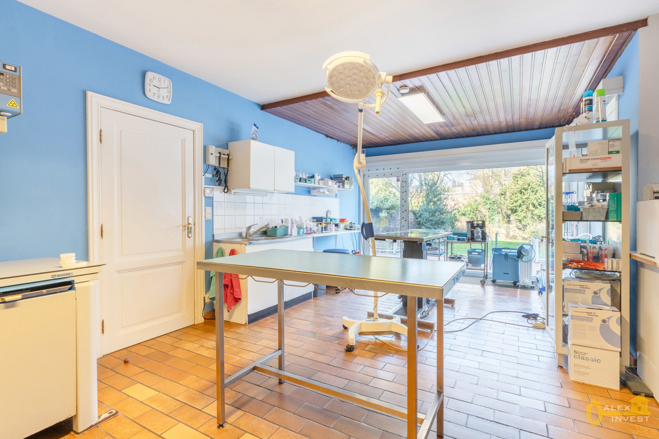 Charmante maison de +/- 317m² habitables (actuellement utilisée en tant que clinique vétérinaire). Sera libre d’occupation à fin 2025. Idéal soit pour grande famille, soit utilisation mixte habitation/professionnel, soit totalement professionnelle ( par exemple : maison médicale ). Celle-ci se situe proche de toutes les facilités et est composée comme suit : REZ : Hall d'entrée, salle d'attente, un bureau, une salle de consultation de +/- 37m², une cuisine et un WC séparé. ENTRE-SOL : Hall de nuit, 2 chambres de +/- 18 et 21m² donnant sur une TERRASSE, une salle de bain/douche avec WC et un WC séparé. 1er ETAGE : Hall de nuit, 3 spacieuses chambres (+/- 14, 23 et 23m²). 2ème ETAGE : Grenier aménageable de +/- 70m². GARAGE, JARDIN et CAVE. Faire offre à partir de 249.000€ sous réserve de l'acceptation des propriétaires. À visiter sans tarder !!!