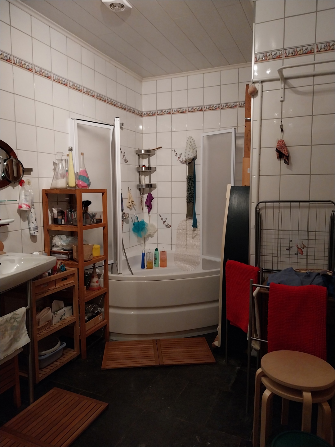 RDC: avec une entrée en façade, composé d'une grande pièce de +- 36m2, d'un wc avec lave-main et d'une salle de bain. Une buanderie. Un escalier donne accès au premier étage.