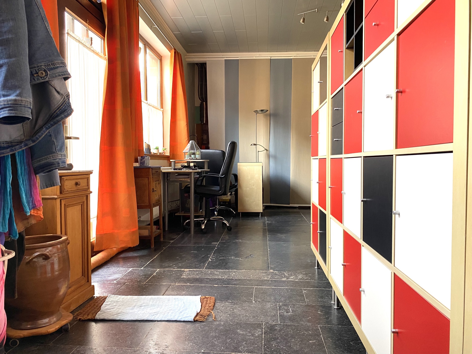 1er ETAGE: avec entrée indépendante sur le côté, composé d'un hall d'entrée, d'une salle d'eau avec wc et lavabo (possibilité d'y placer une douche), d'un grand séjour de +- 43m2 avec coin cuisine (cuisine équipée) et îlot central, d'un escalier donnant sur le deuxième étage.