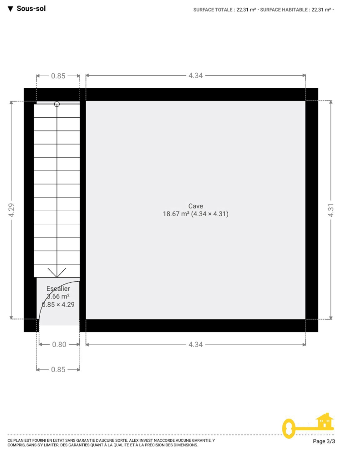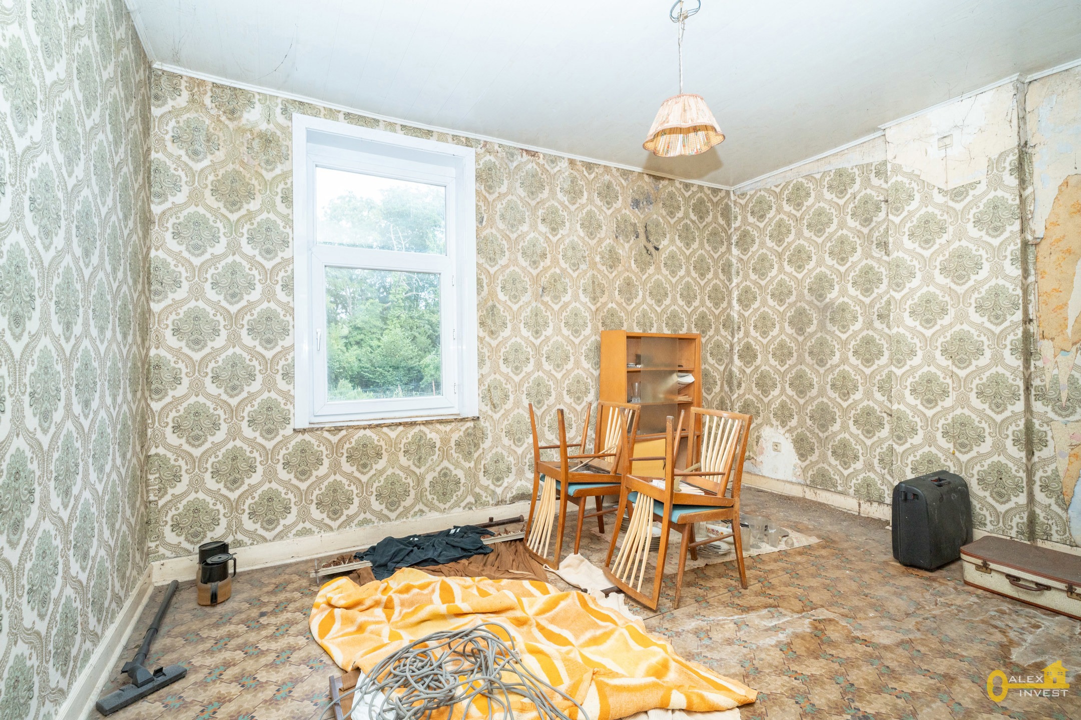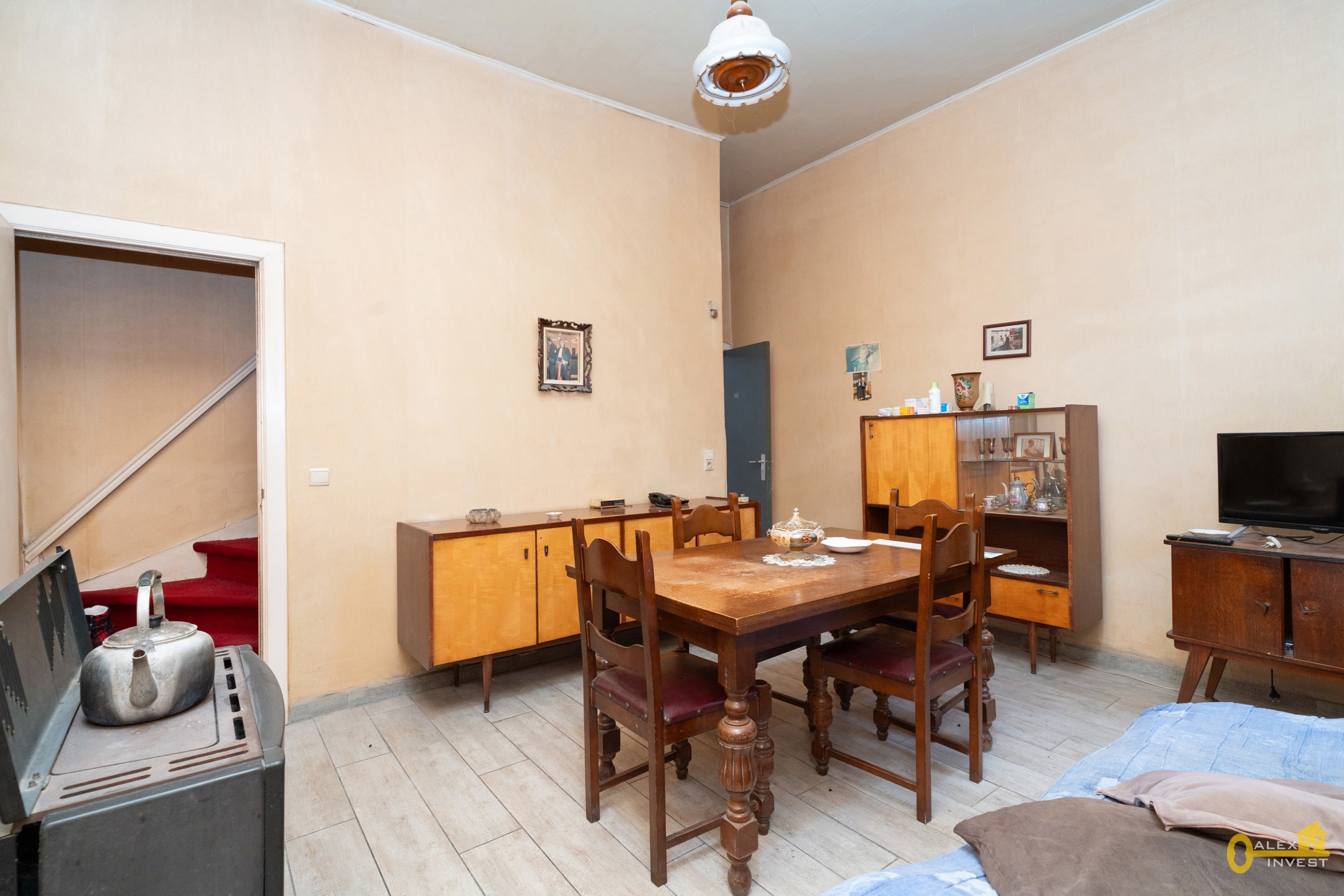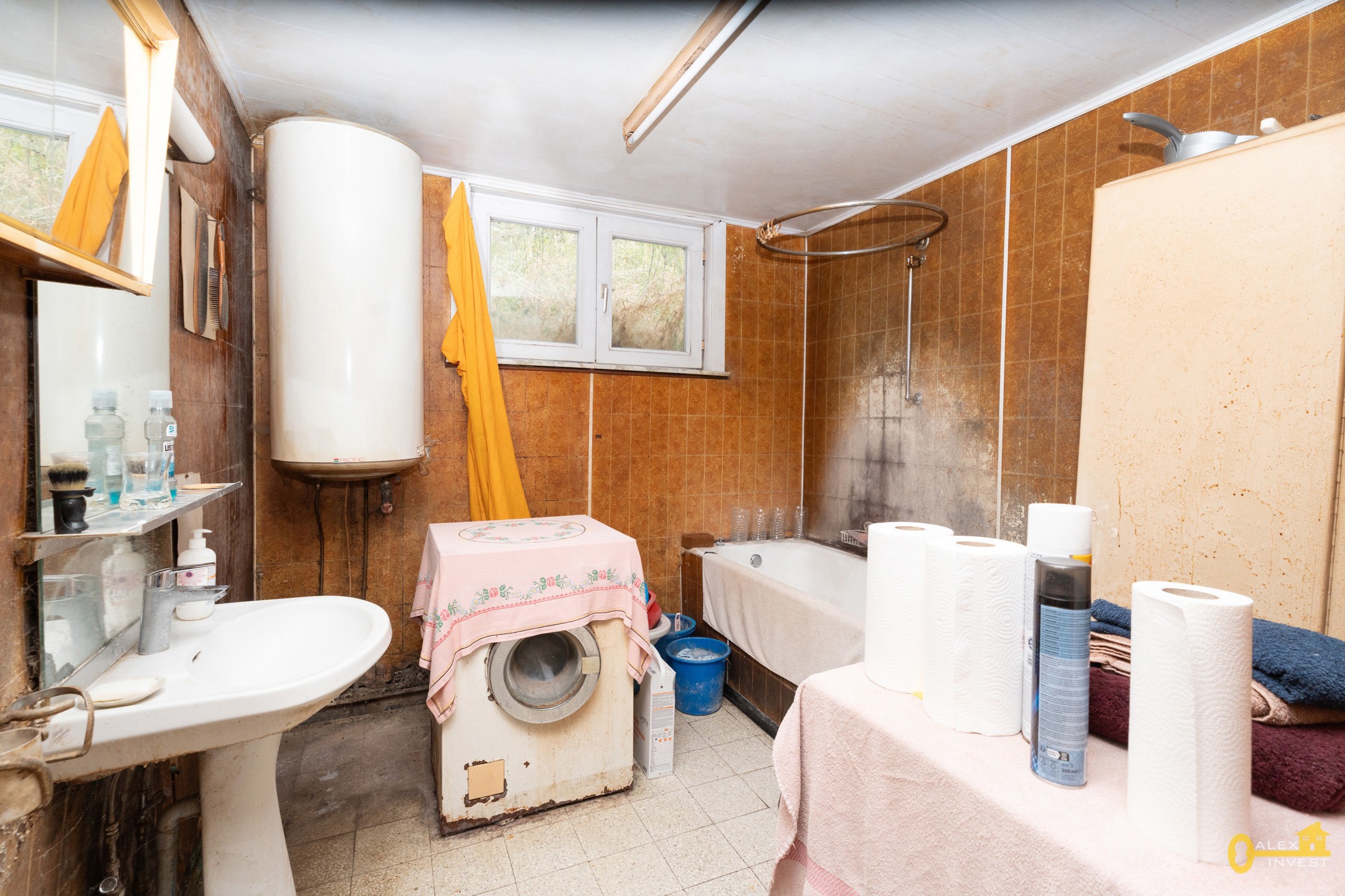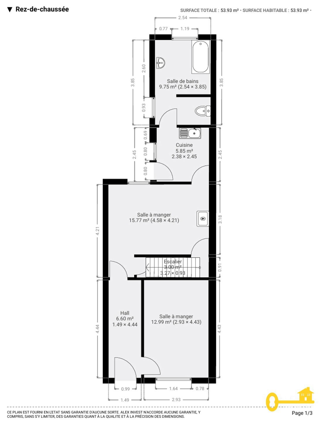 RDC: grand hall d'entrée, salon, salle à manger, cuisine et salle de bain avec WC.