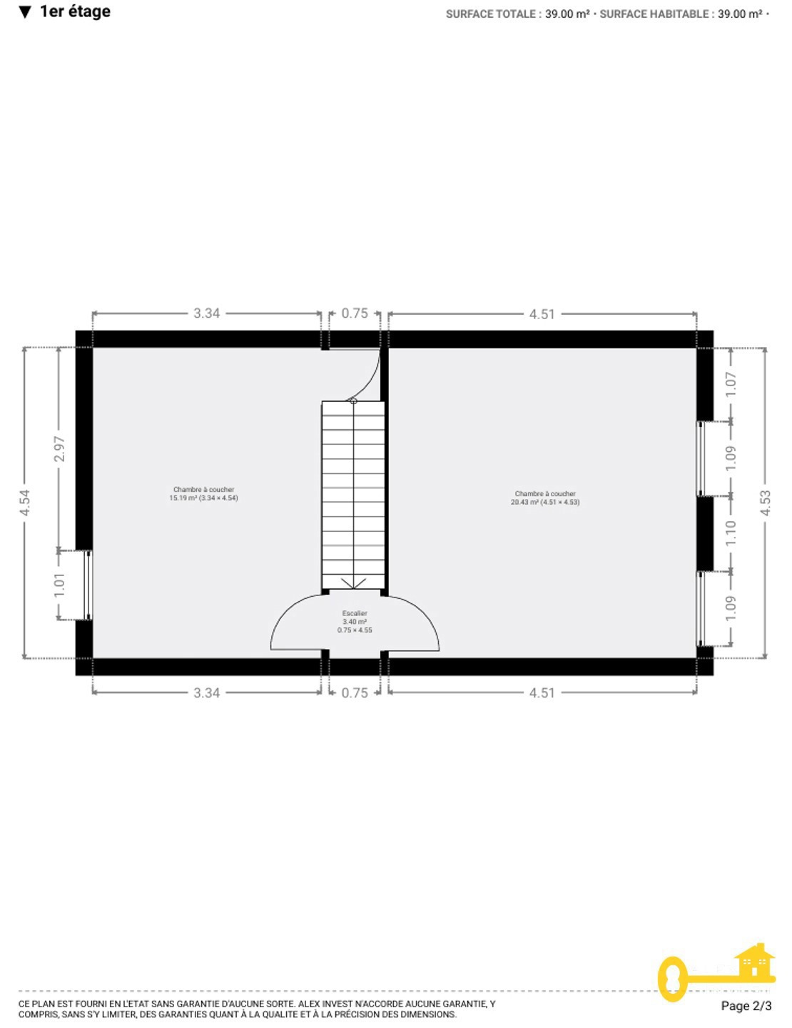 1e ETAGE: 2 chambres (+-15 et 20 m²)
