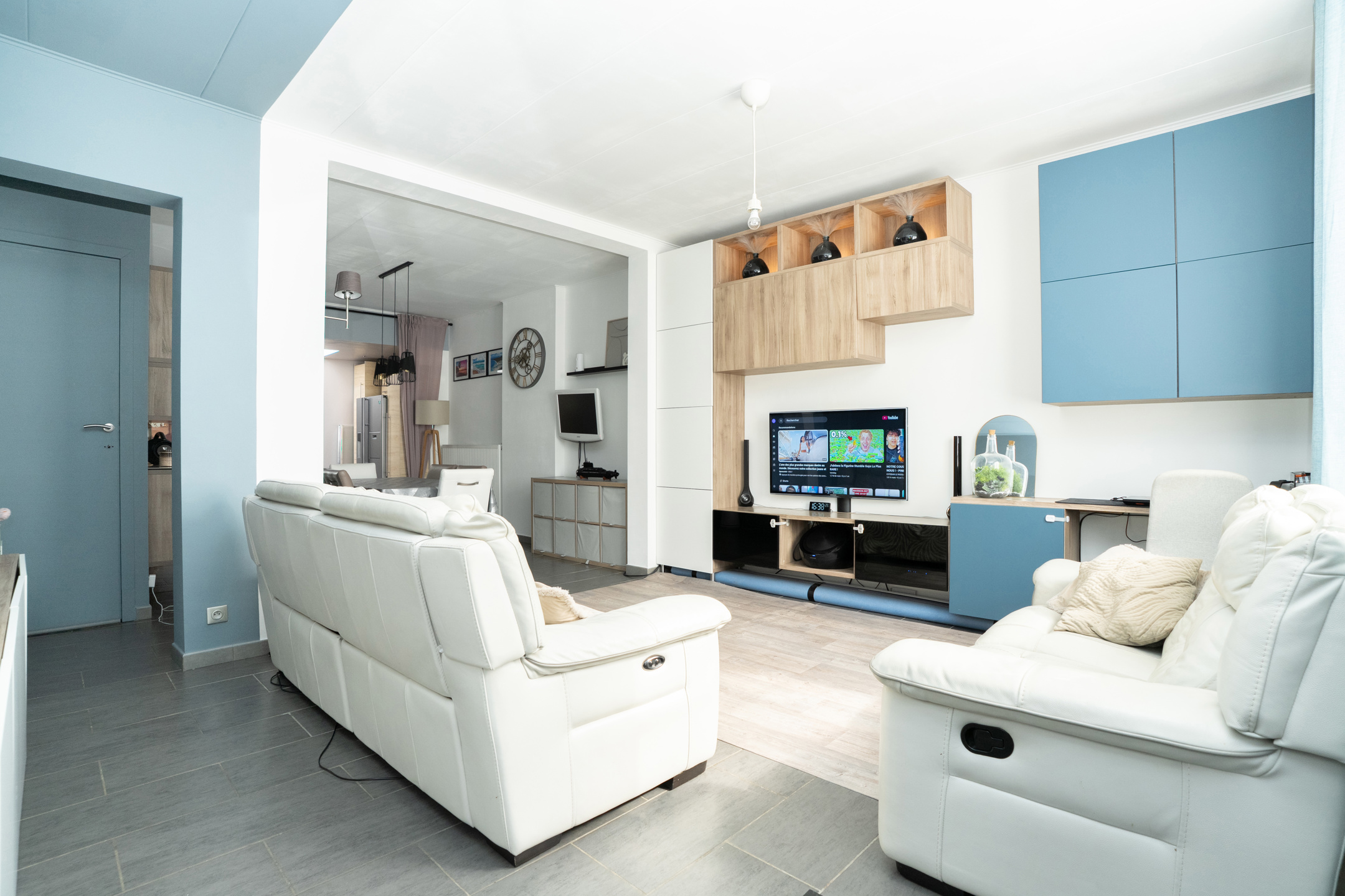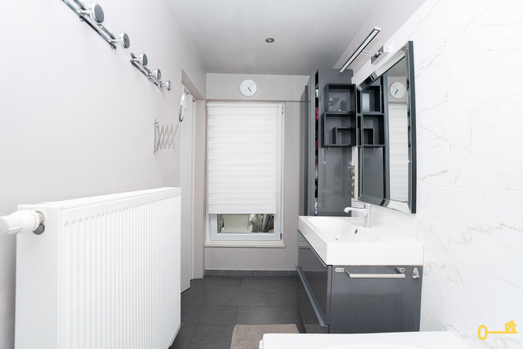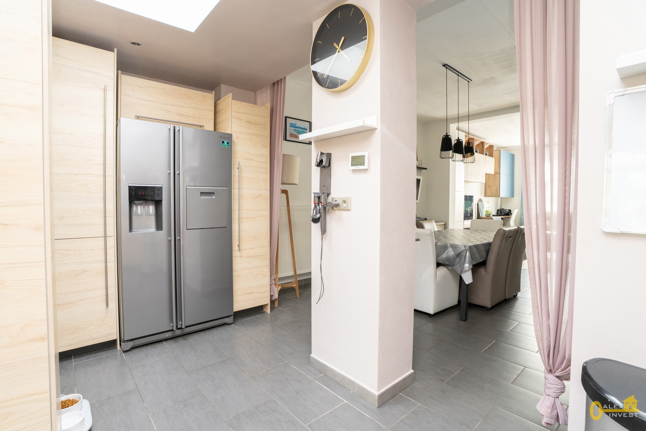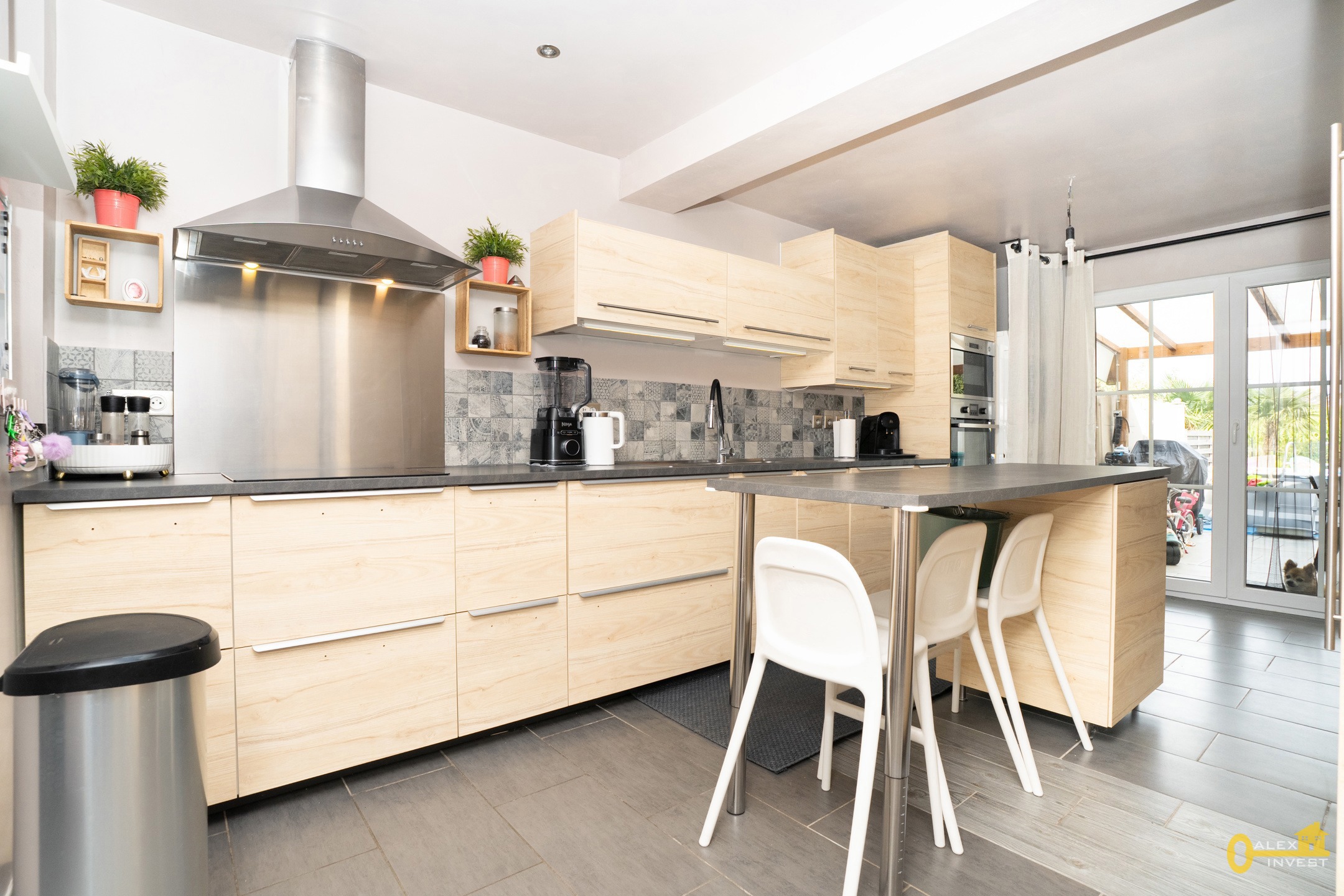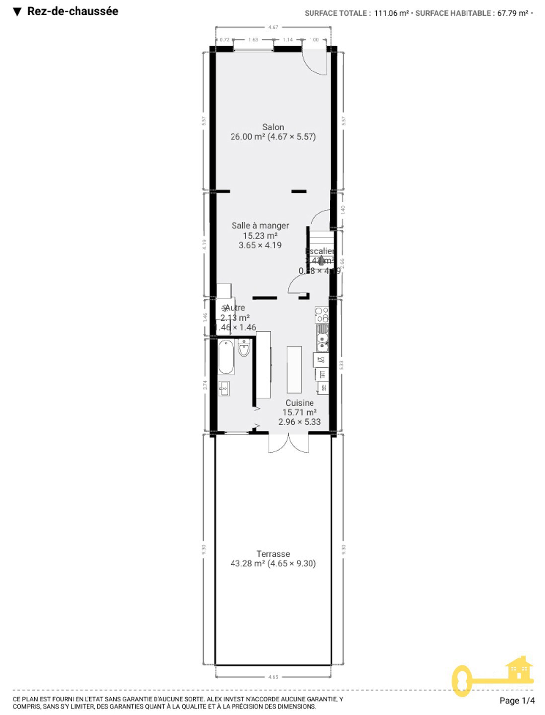RDC: SALON SPACIEUX de +- 26 m², salle à manger semi-ouverte sur une cuisine SUPER-EQUIPEE avec ilot central proposant un espace dinatoire. La cuisine est dotée de très nombreux rangements et dispose d'un espace buanderie. Une porte fenêtre donne accès à la terrasse. Salle de bain avec bain, lavabo et WC.