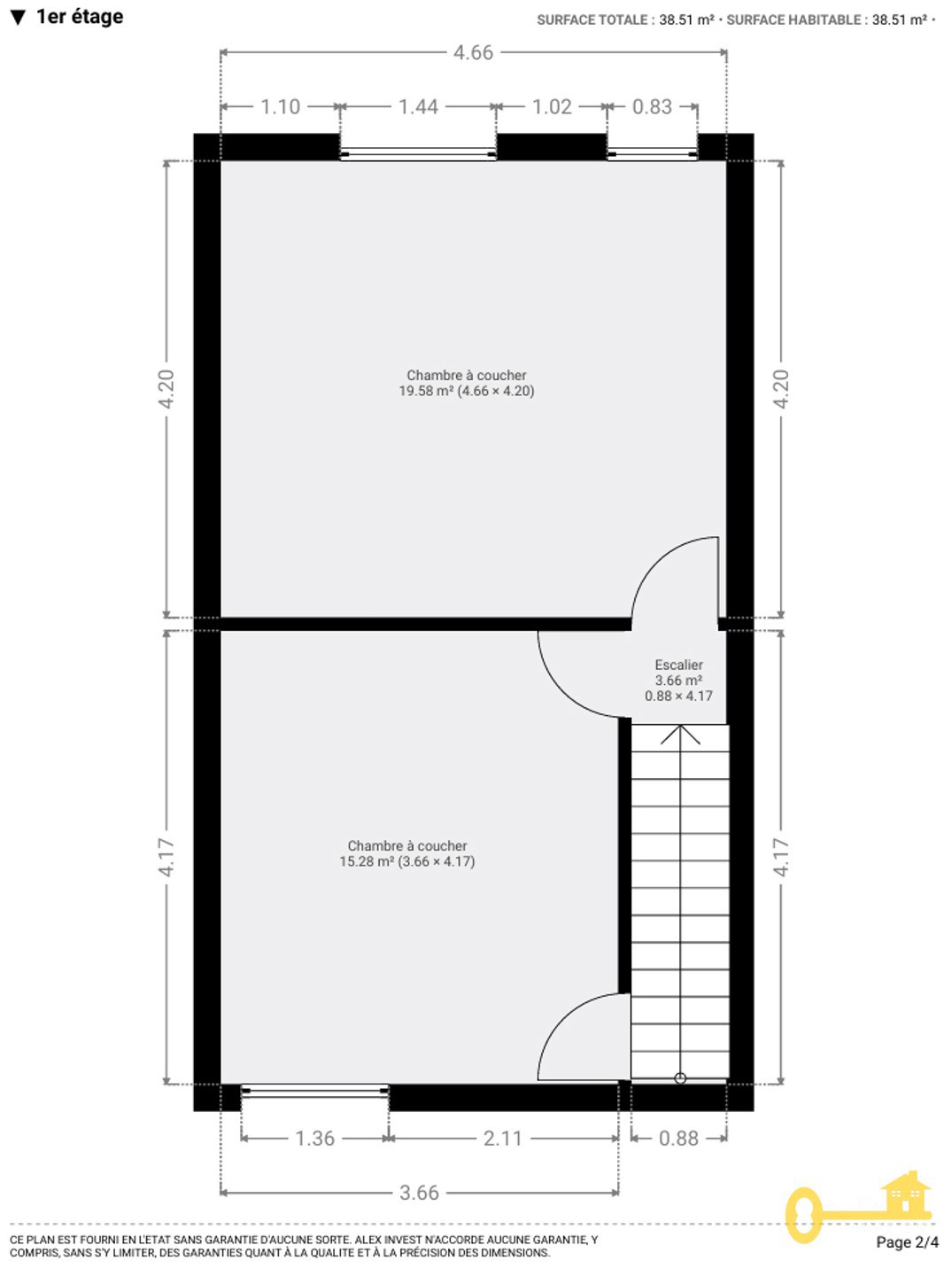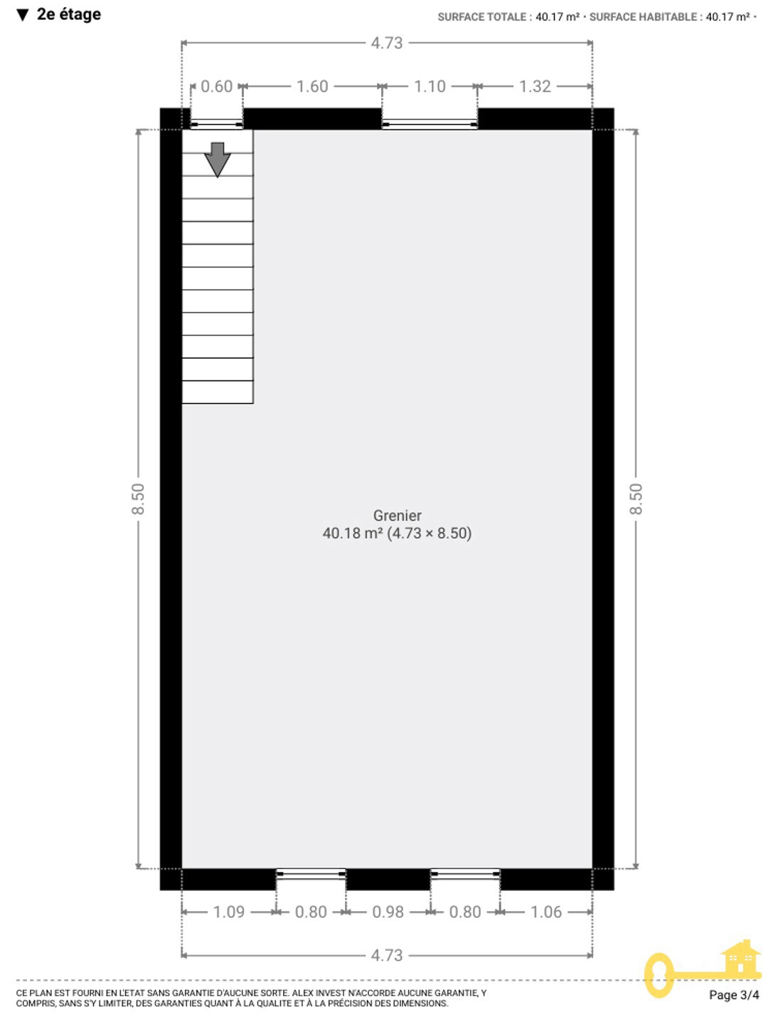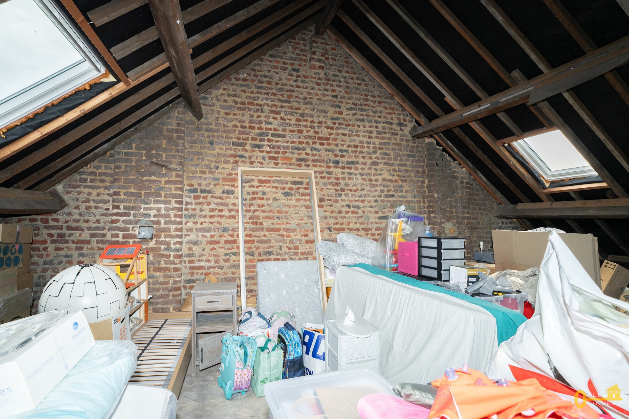 2e ETAGE: grenier de +- 40 m², accessible par un escalier fixe. Ce GRENIER peut être facilement aménagé: les arrivées pour l'électricité et les tuyaux de chauffage ainsi que les velux sont déjà là!