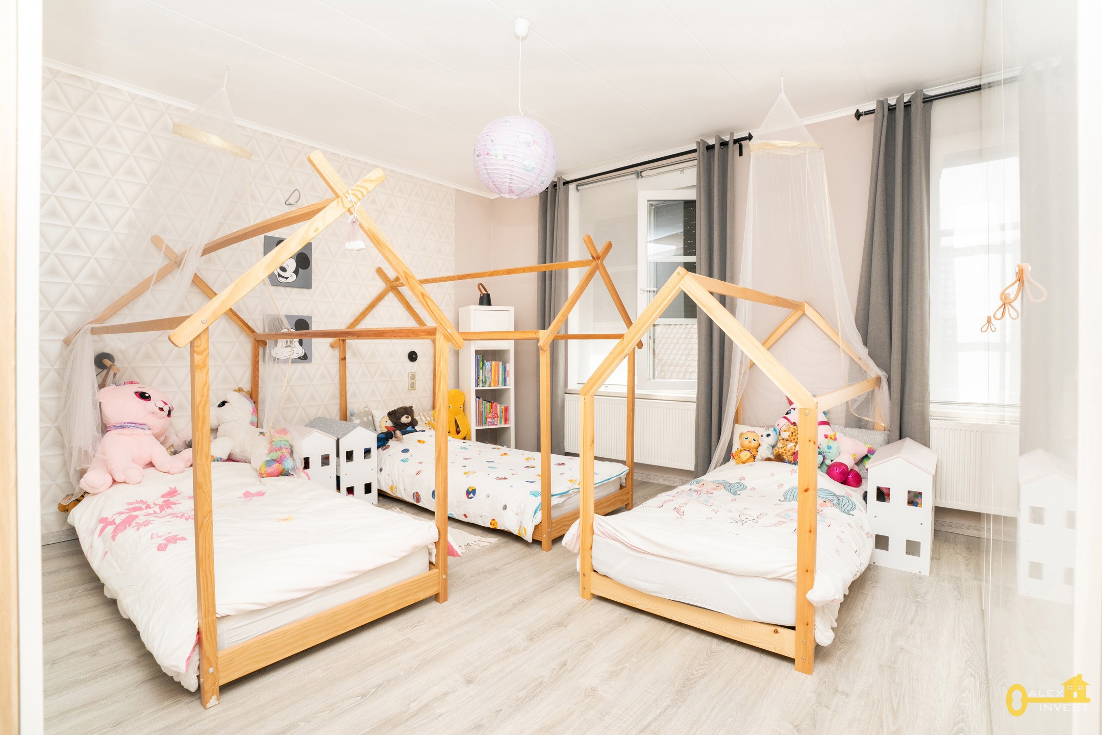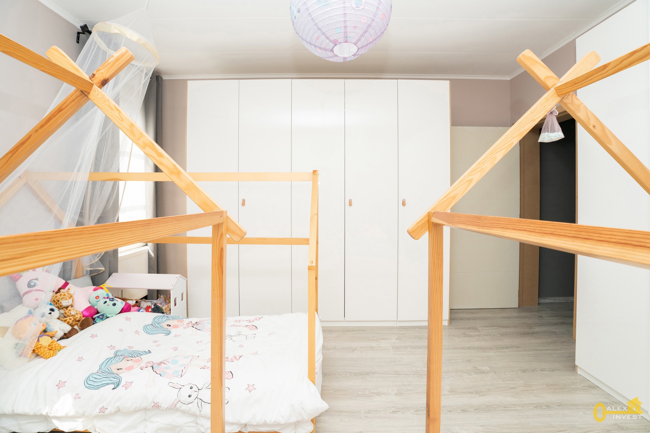 1e ETAGE: hall de nuit, 2 grandes chambres de +- 20 m² et +- 15 m².