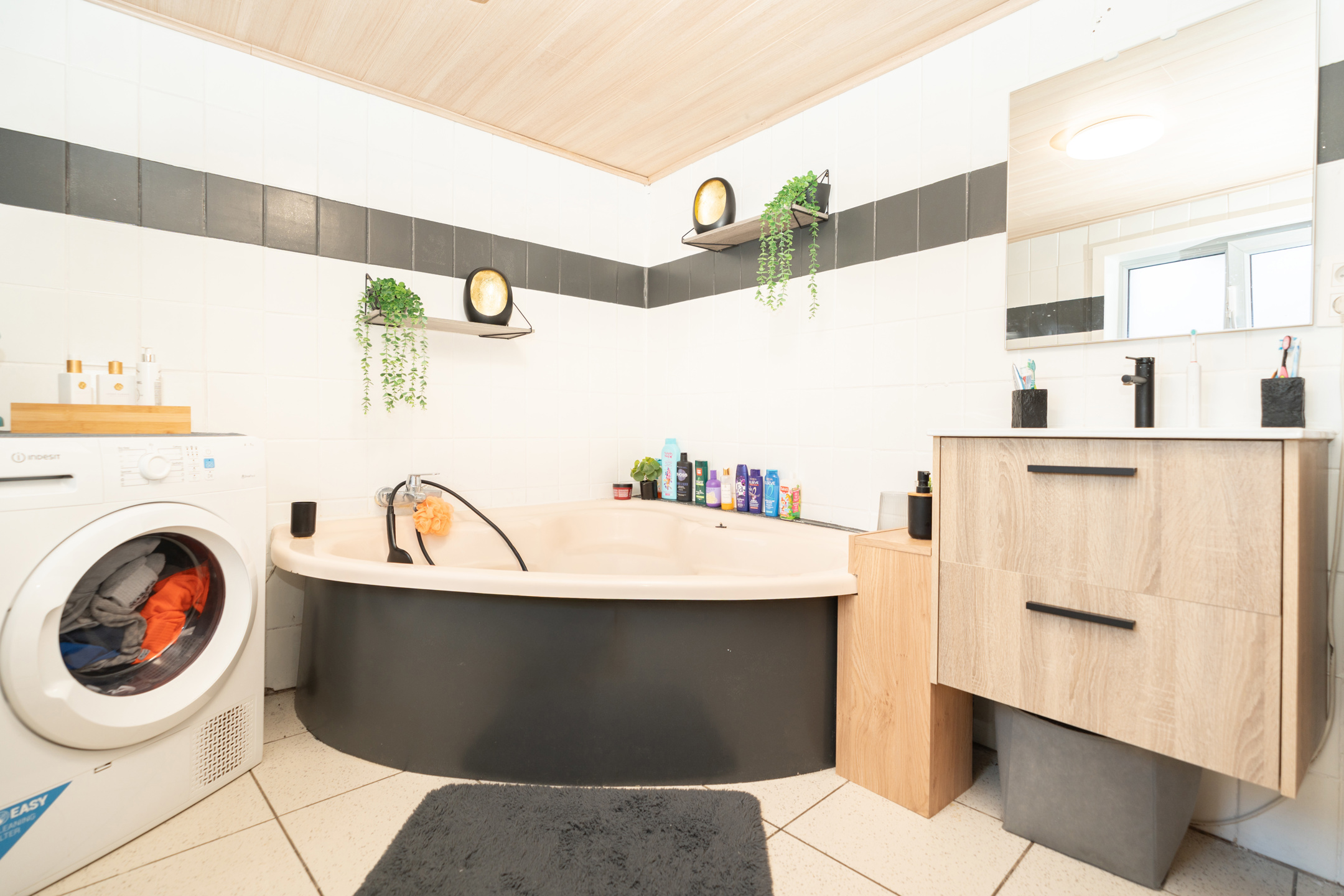 => Au rez-de-chaussée, agréable Salle à Manger, un Salon, ainsi qu’une Cuisine semi-équipée avec un espace dinatoire. Une Buanderie pratique et une Salle de Bain avec WC.