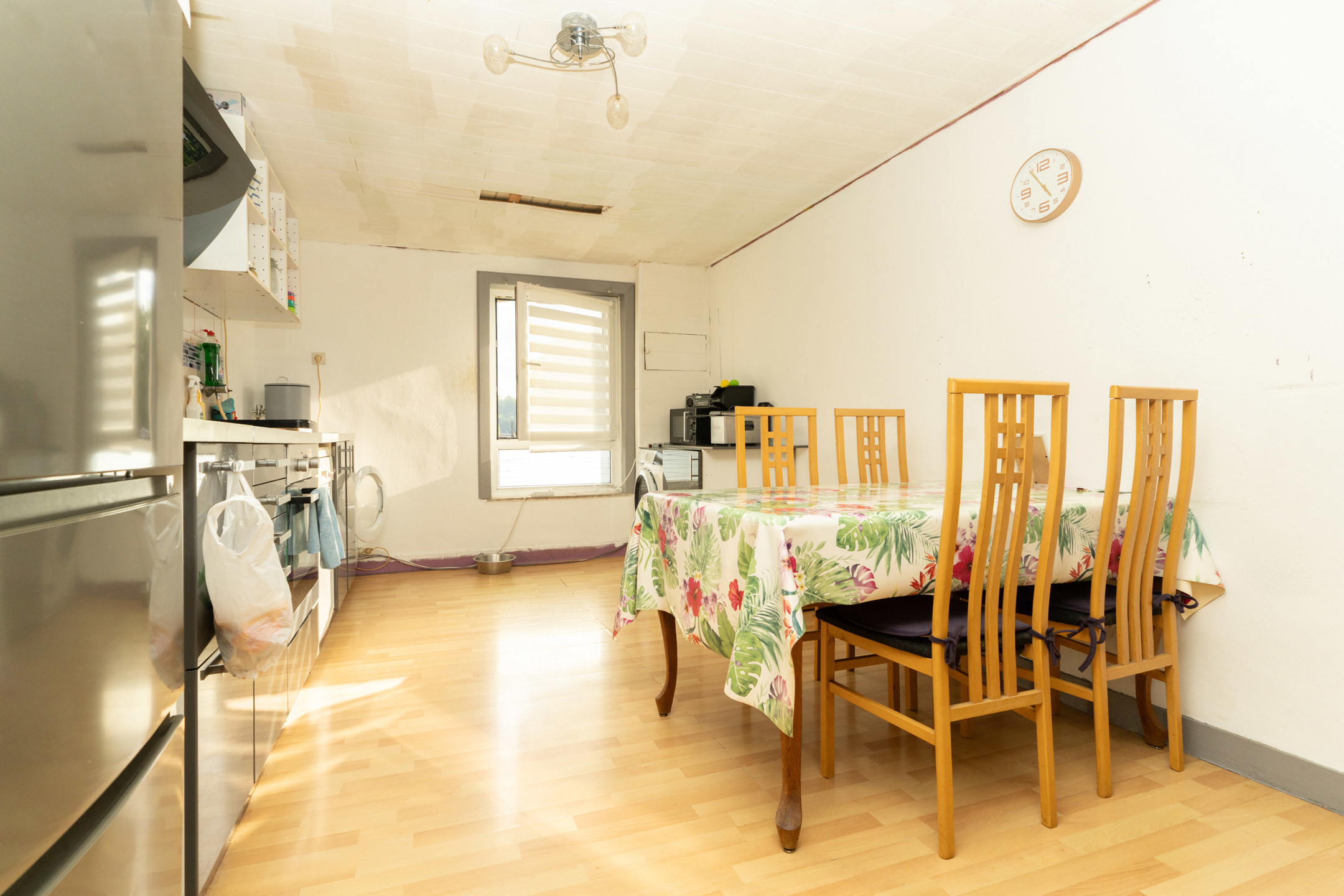 => Au 1er étage, on retrouve un appartement de ± 92 m², comprenant un hall d’entrée, une salle de bain avec WC, une cuisine avec espace dinatoire, une spacieuse et lumineuse salle à manger, un salon, ainsi qu’une chambre.