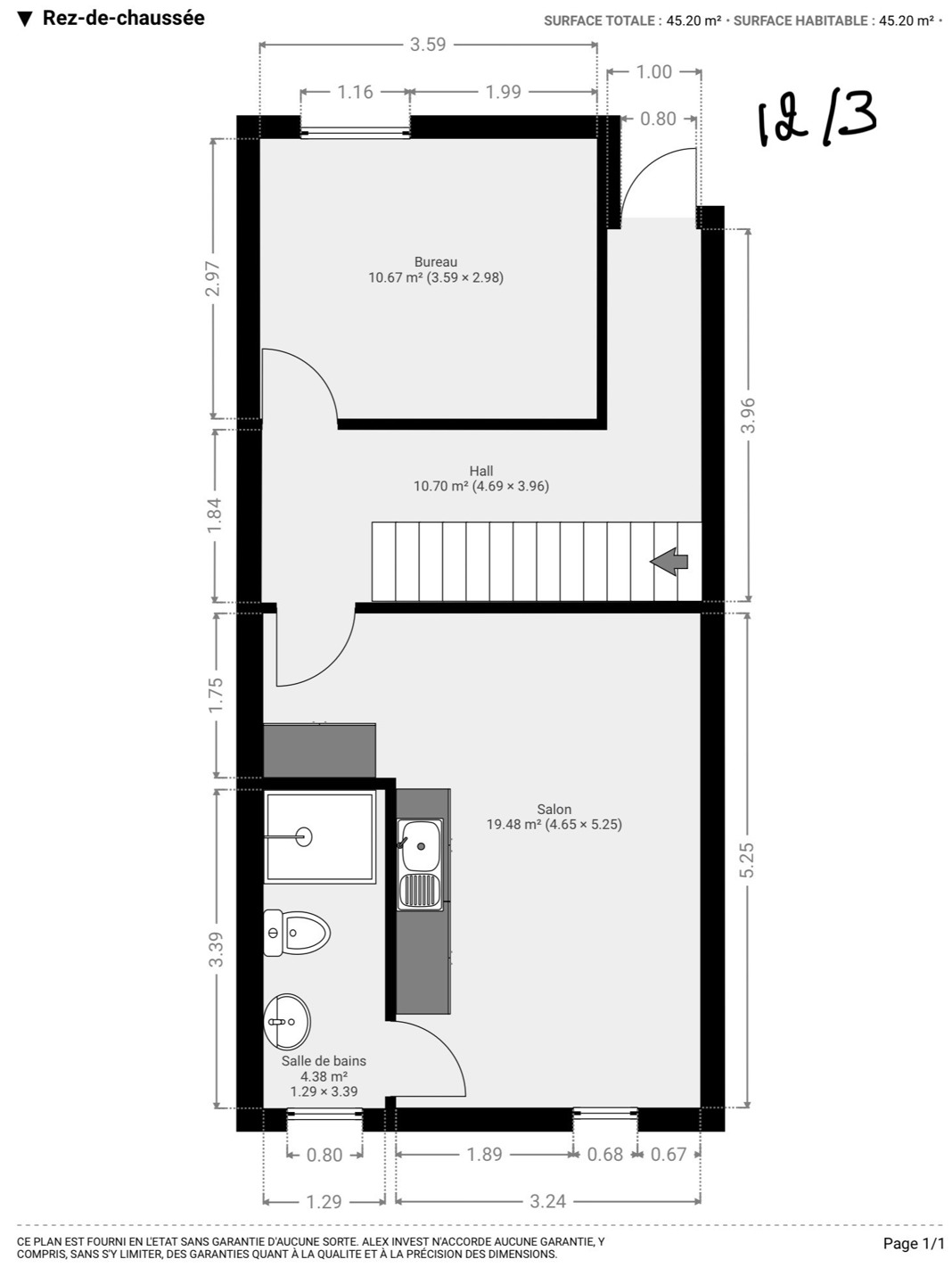 => Rez-de-chaussée : Hall d’entrée commun desservant :