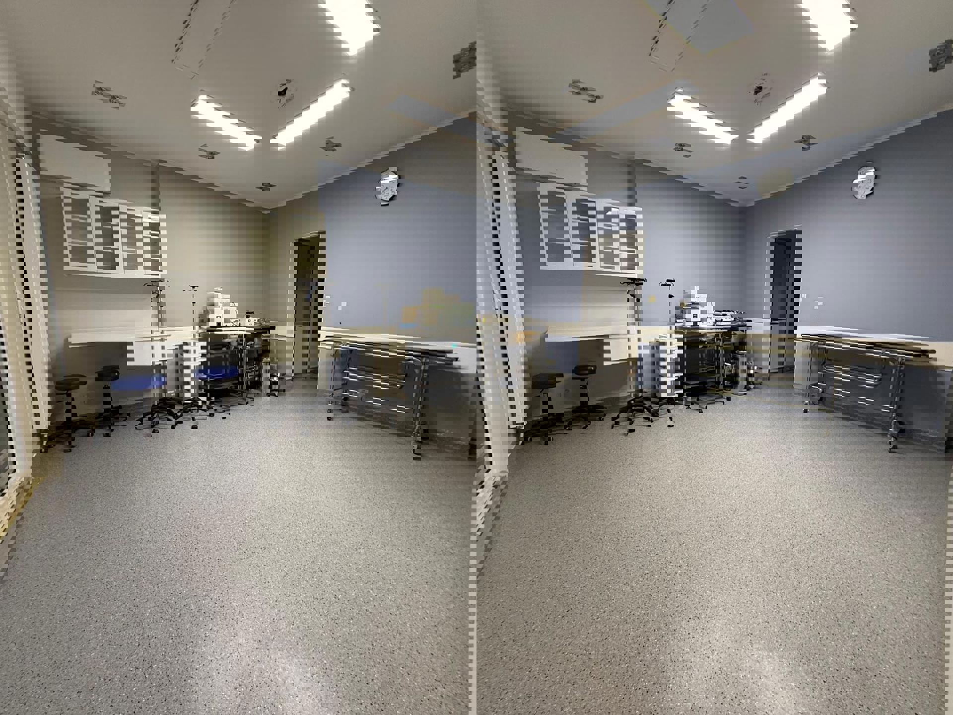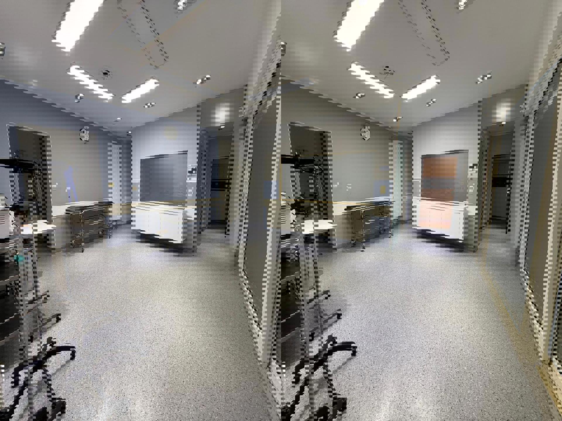 => Au rez-de-chaussée, accessible par l’entrée principale, vous trouverez un hall d’accueil avec WC séparé, un espace de rangement, une salle d’opération de ±33 m², un bureau, une cuisine de ±16 m², un second hall, une salle d’attente, deux bureaux supplémentaires et un deuxième WC séparé. Cet étage peut facilement être réorganisé en un grand séjour et trois chambres selon vos besoins.
