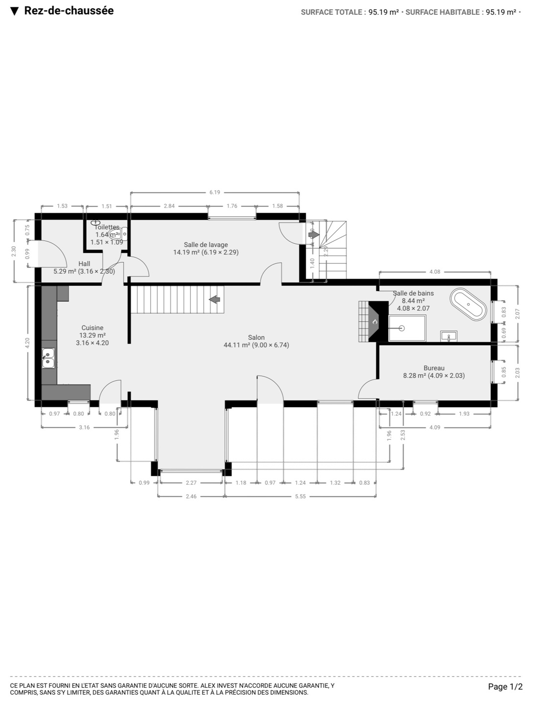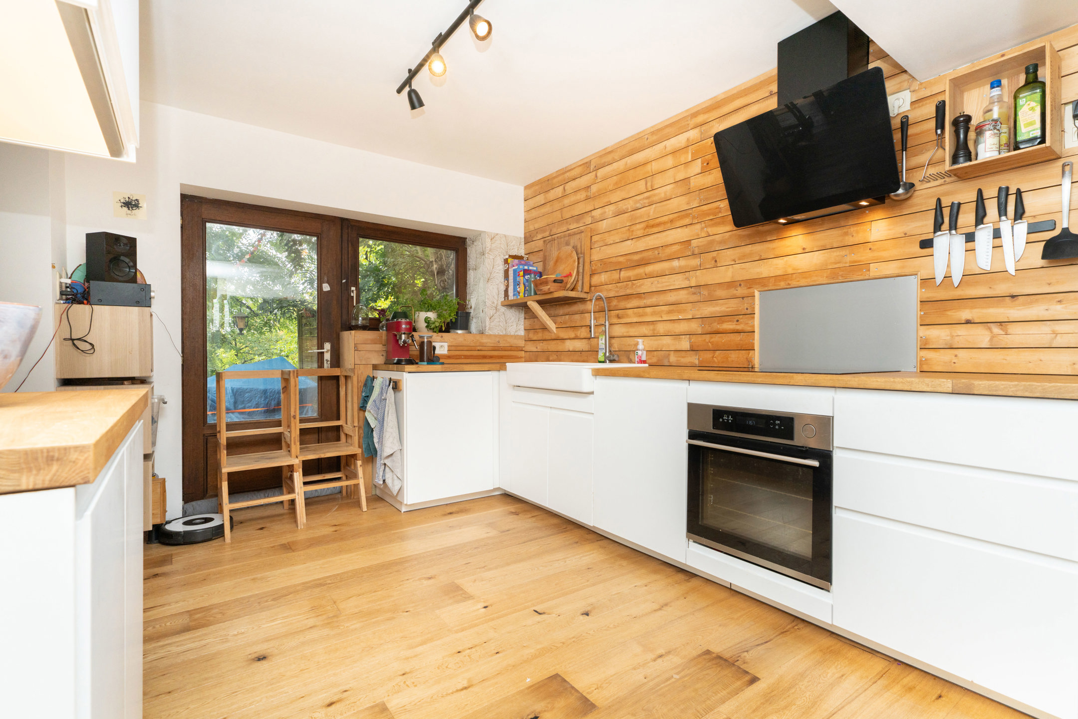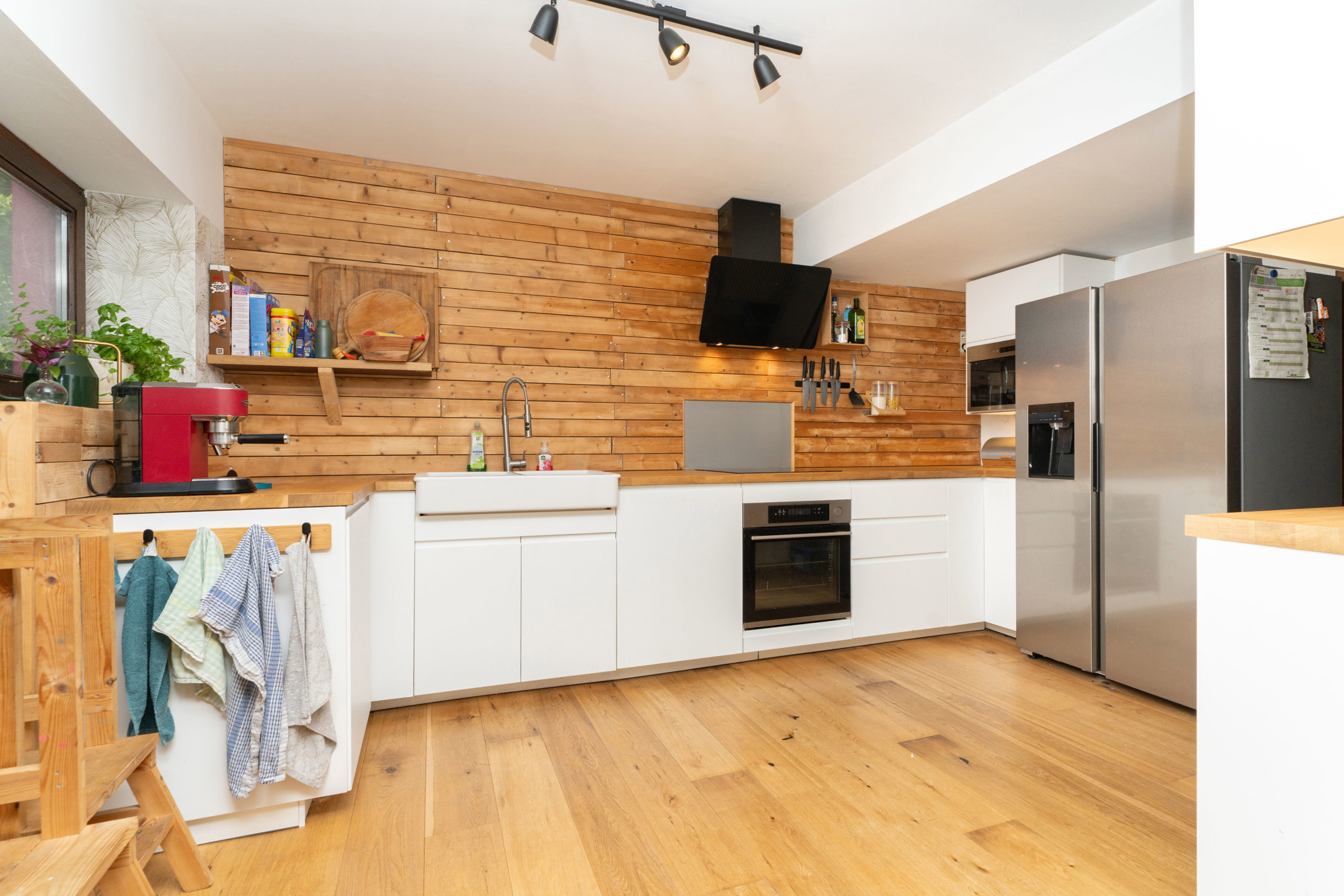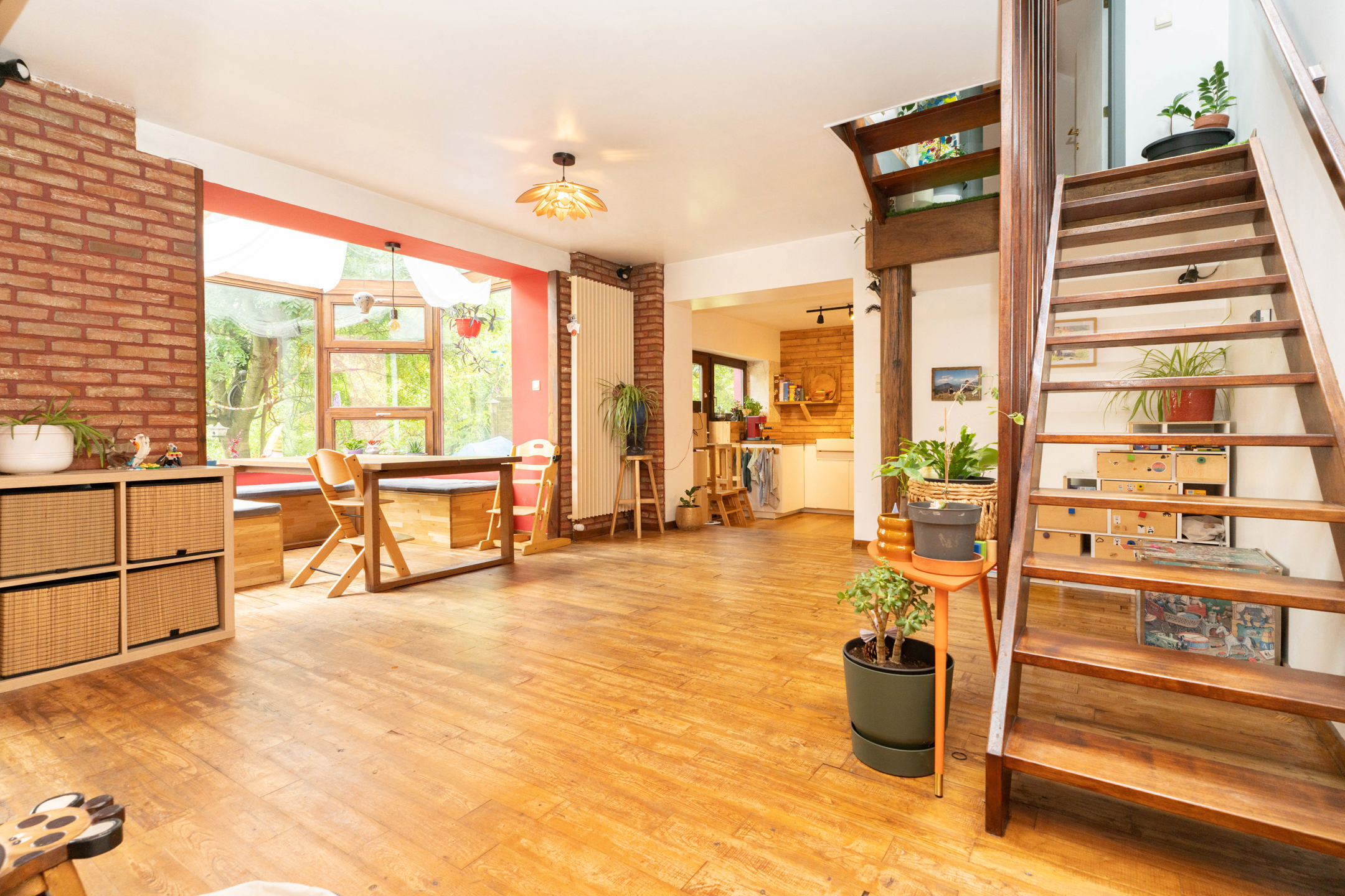 => Le rez-de-chaussée se compose d’un vaste et lumineux séjour de ±44 m², agrémenté d’un superbe salon d’hiver. Vous y trouverez également une cuisine super-équipée, une salle de bain avec baignoire et douche, un bureau, une buanderie ainsi qu’un WC séparé.