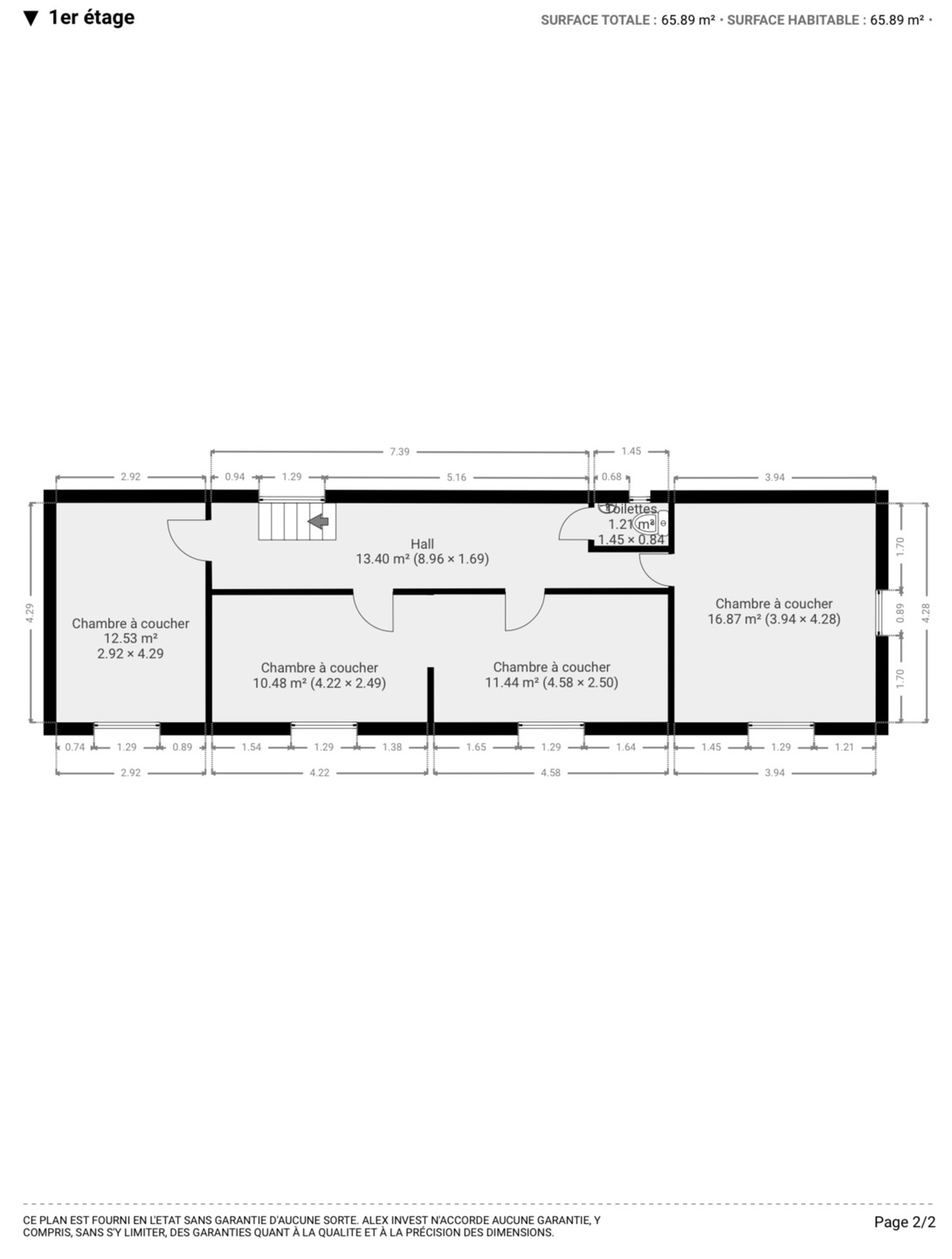 => À l’étage, un hall de nuit dessert 4 chambres allant de ±11 m² à 17 m², ainsi qu’un deuxième WC séparé.