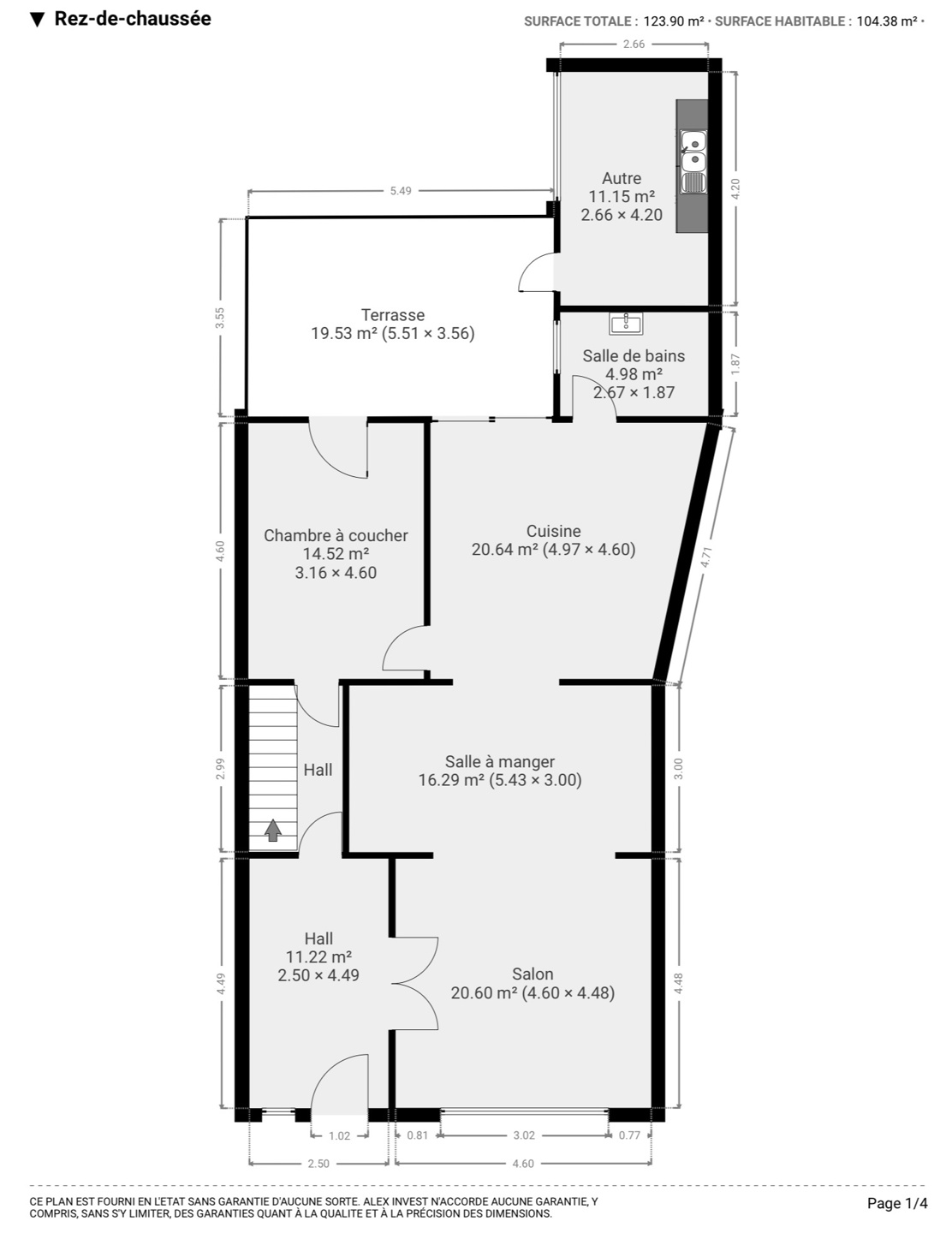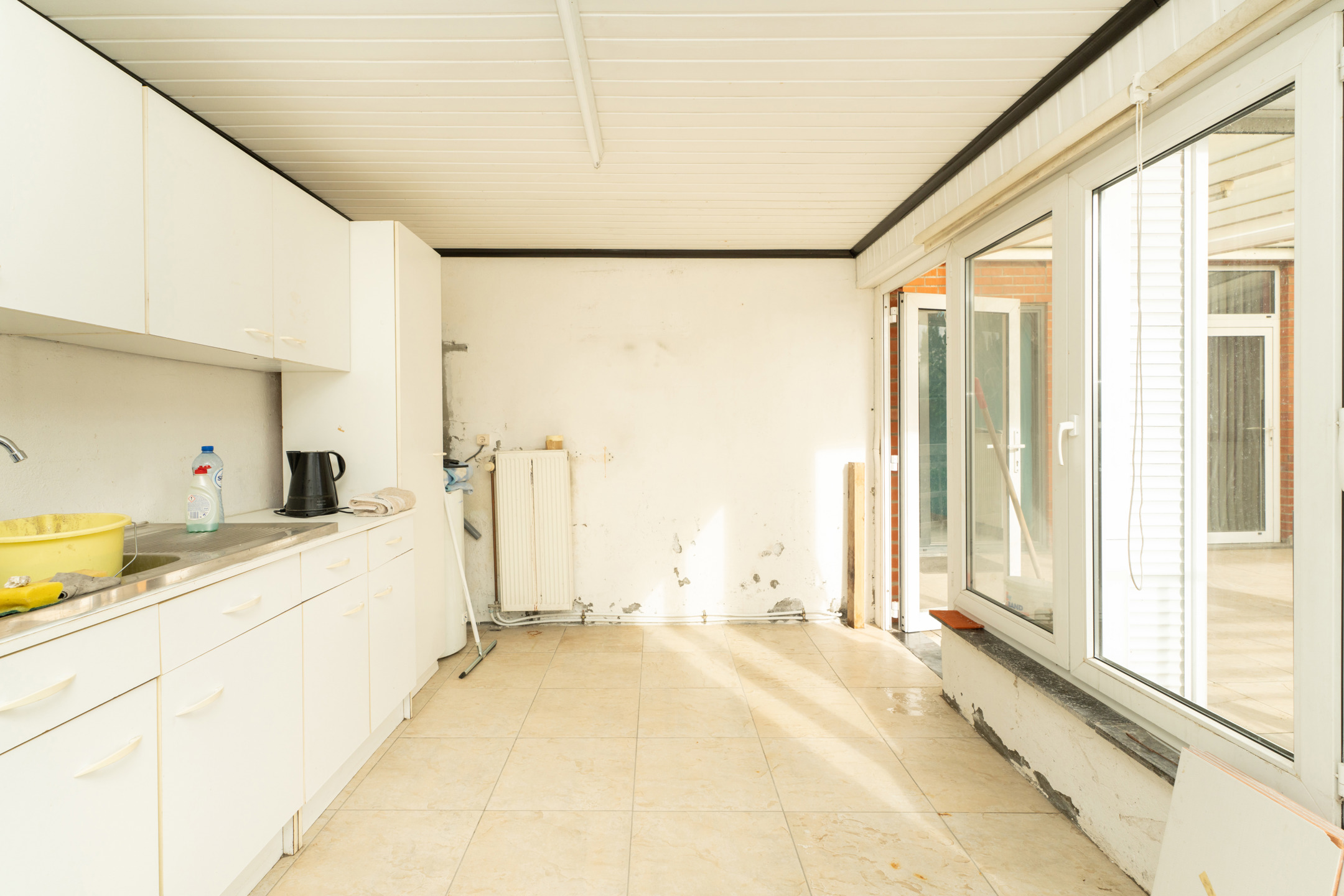 => Au rez-de-chaussée, grand hall d’entrée menant à un salon lumineux d’environ 21 m², une salle à manger de près de 16 m² ainsi qu’un vaste espace cuisine de ± 21 m² à aménager selon vos goûts et vos besoins. Il comprend également une salle de douche, une arrière-cuisine et une chambre de ± 15 m² pouvant aussi faire office de bureau. Une agréable TERRASSE couverte de ± 20 m² et un JARDIN.