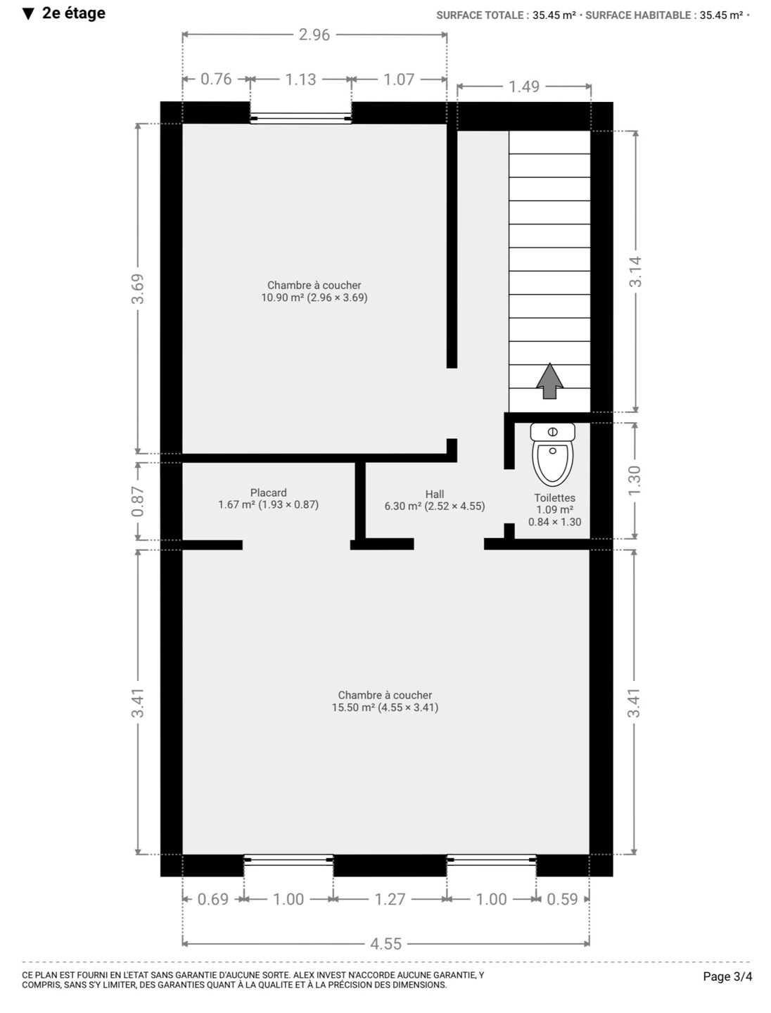 => Au 2ème étage, un hall de nuit dessert un WC séparé et deux chambres de 11 m² et 16 m², dont une munie d’un espace de rangement intégré.