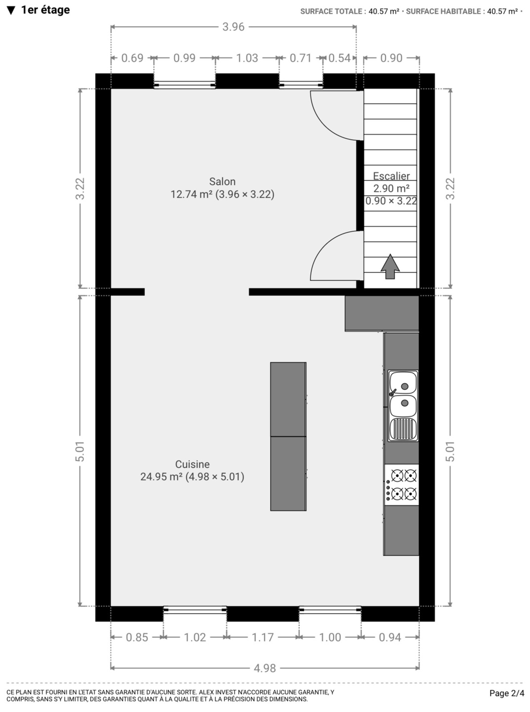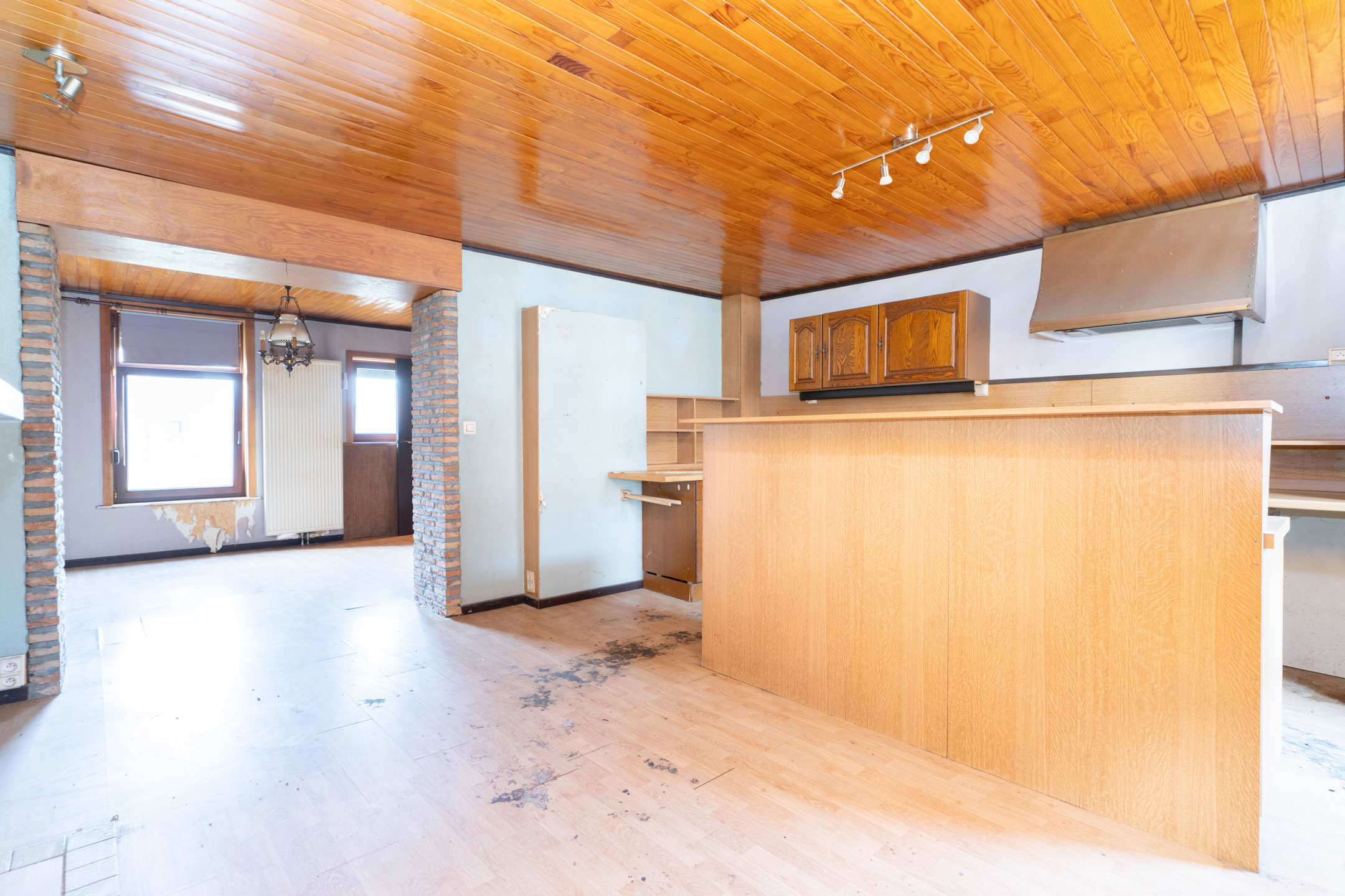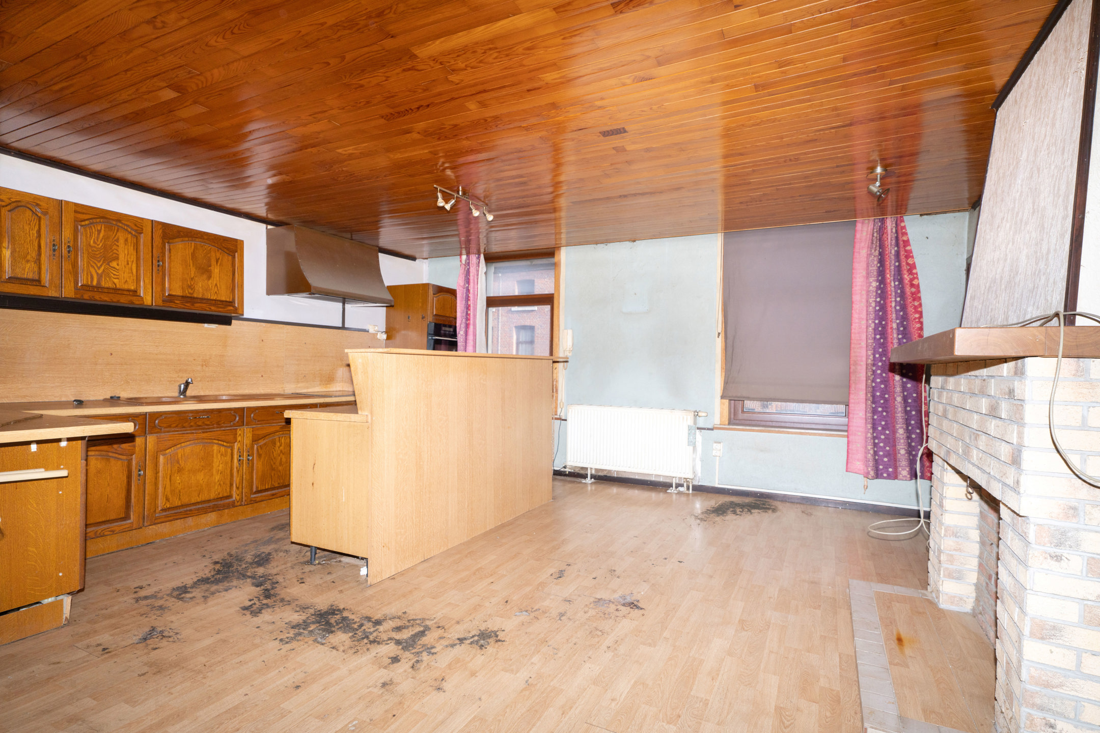=> Au 1er étage, vous trouverez un salon lumineux de ± 13 m² ainsi qu’une grande cuisine équipée avec espace dinatoire de ± 25 m².