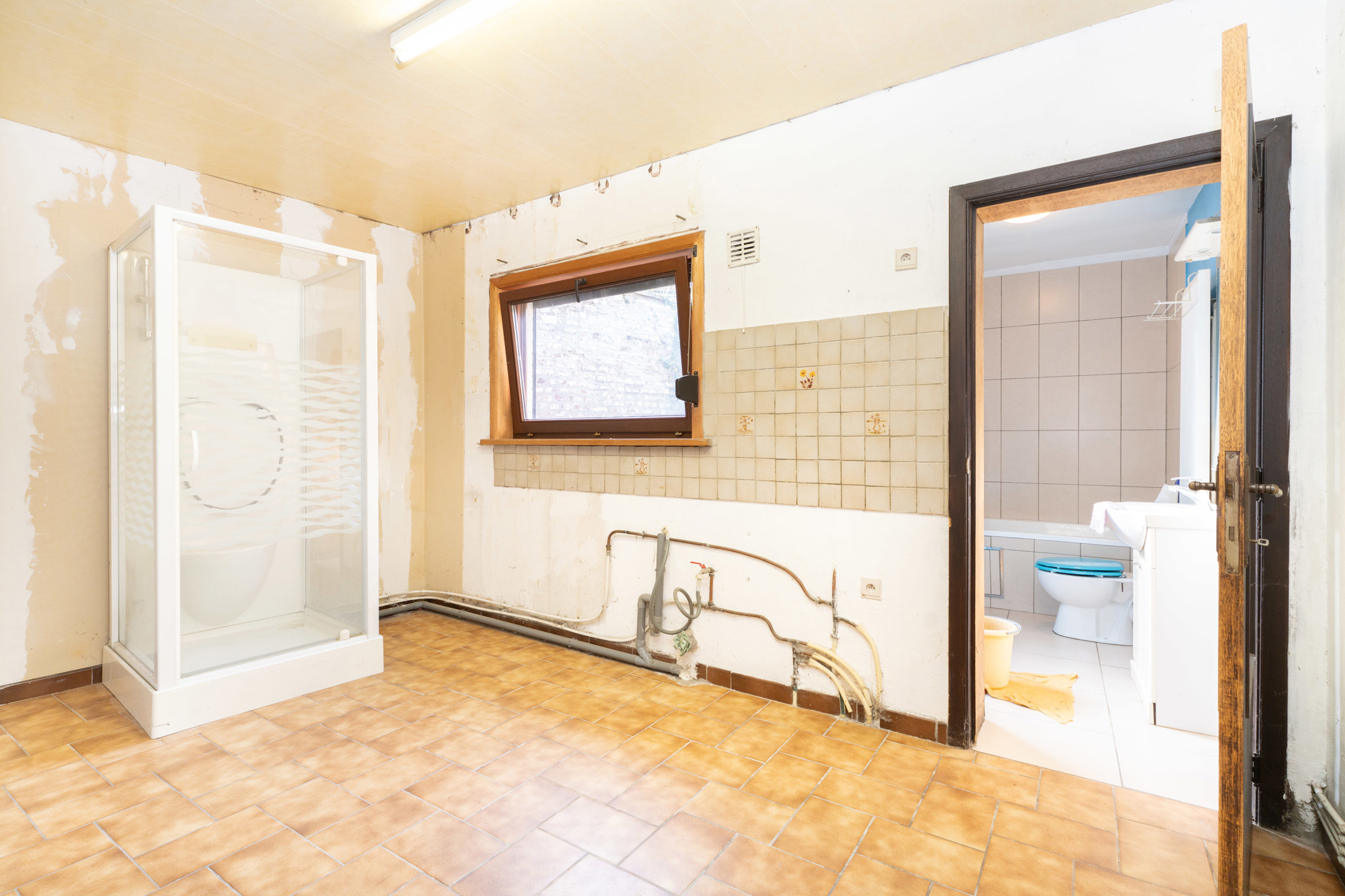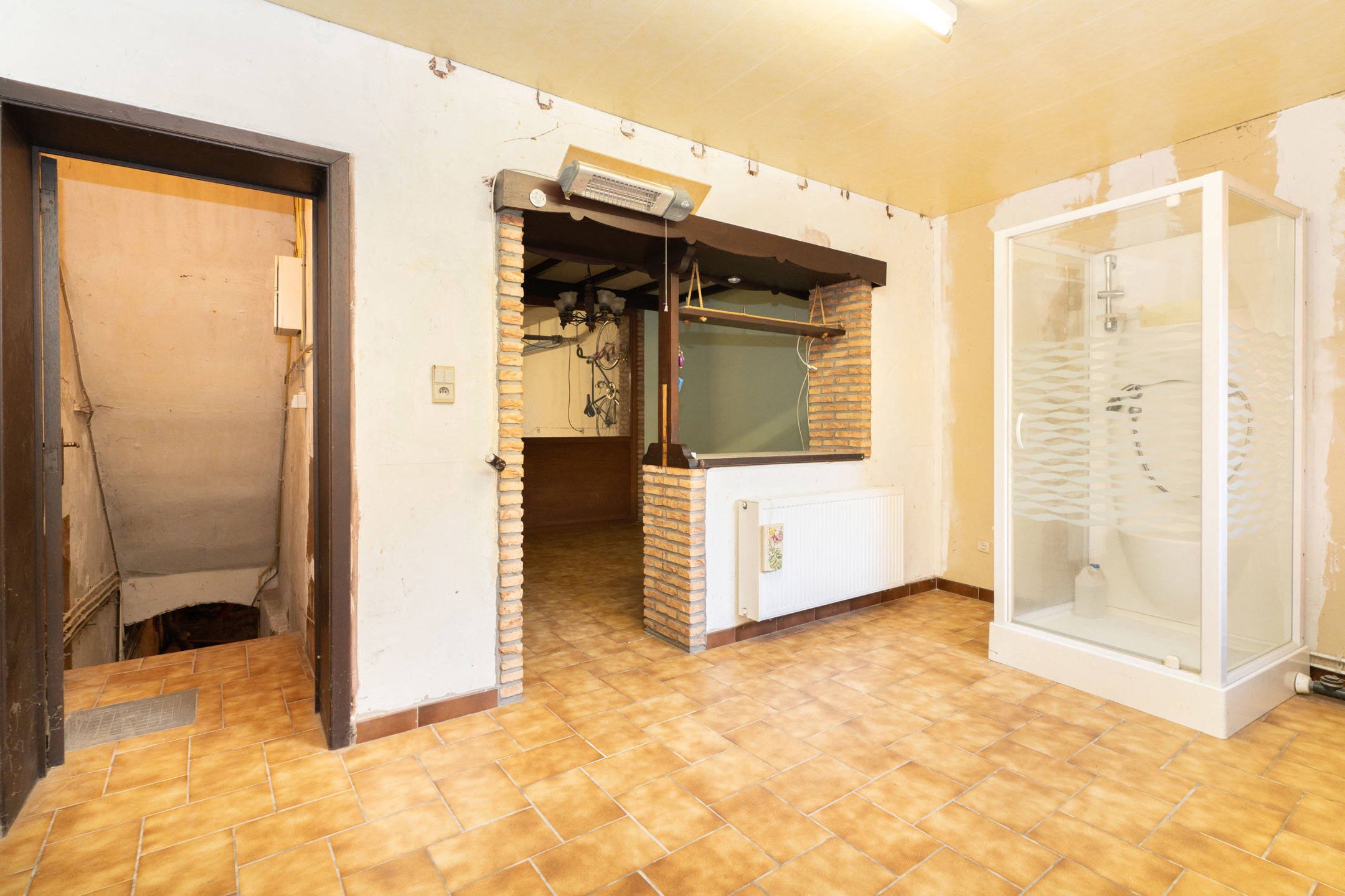 => Au rez-de-chaussée, un spacieux hall d’entrée avec placards de rangement, un GARAGE, une pièce polyvalente de ± 13 m² pouvant être aménagée selon vos envies, une grande buanderie de ± 12 m², une salle de bain avec WC ainsi qu’une TERRASSE d’environ 12 m².