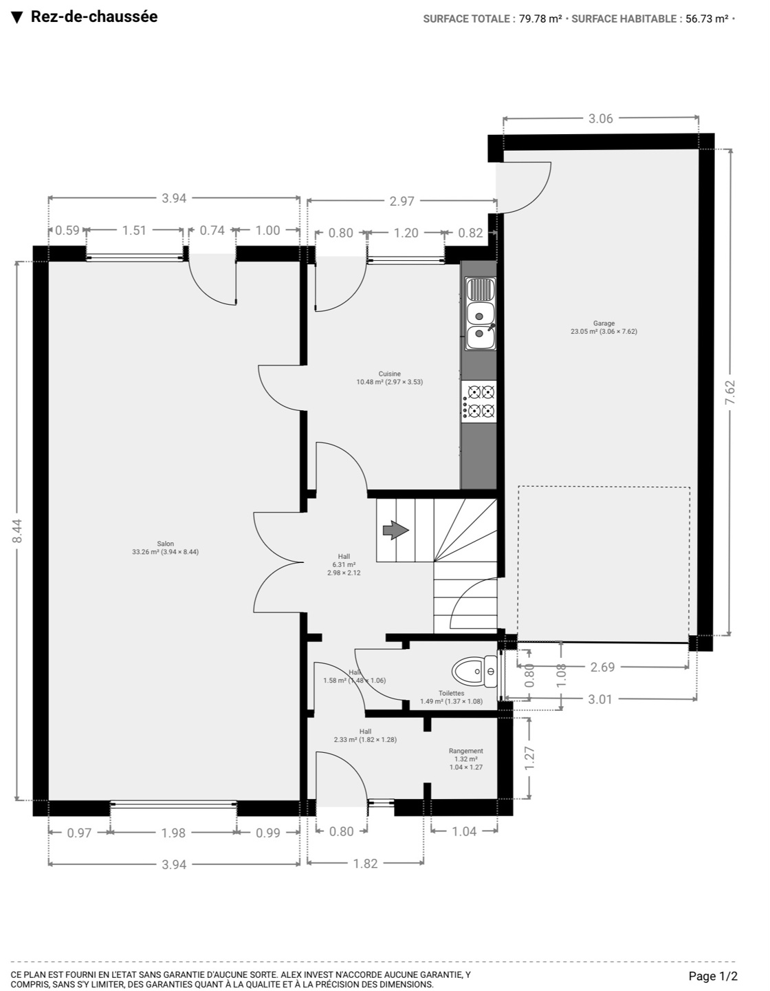 => Au rez-de-chaussée, un hall d’entrée, un espace de rangement, un WC séparé, un hall menant à un séjour lumineux d’environ 33 m² ainsi qu’à une cuisine avec espace dinatoire. Un spacieux GARAGE de 23 m², équipé d’une porte motorisée et d’un espace buanderie. La maison dispose également d’un JARDIN, parfait pour profiter des beaux jours.