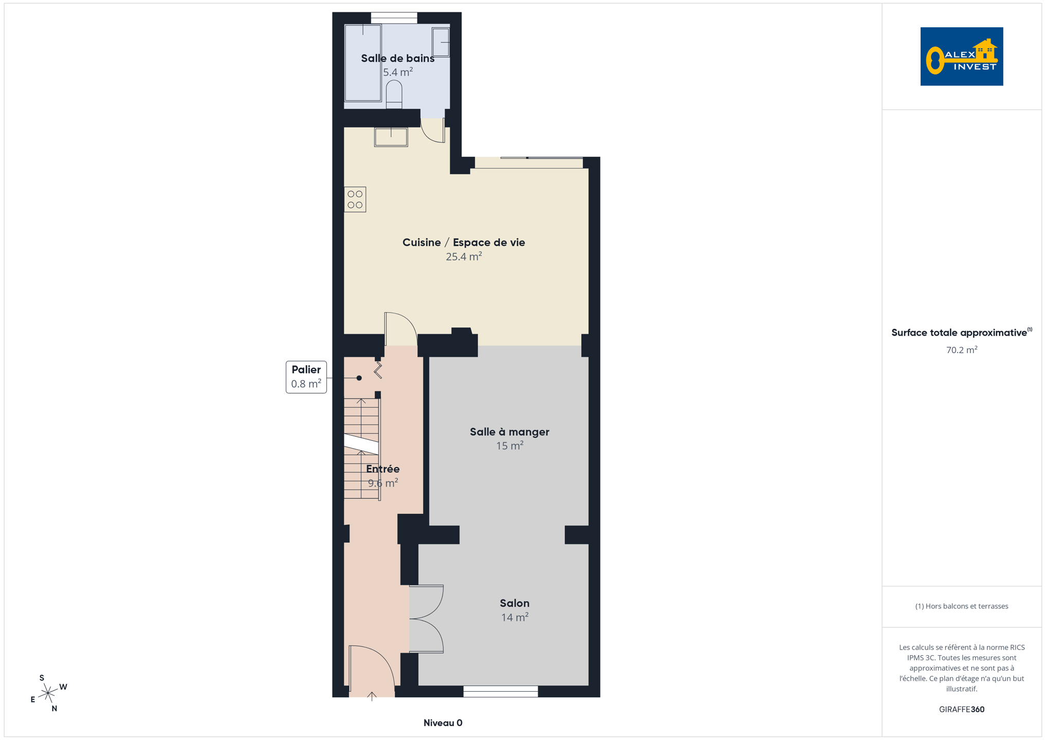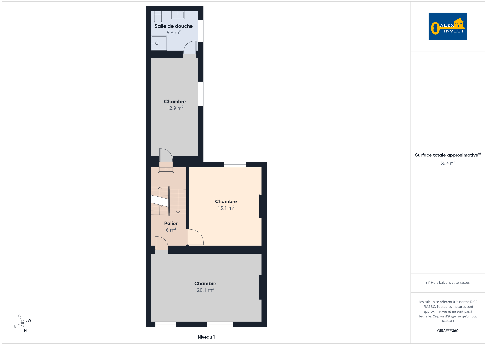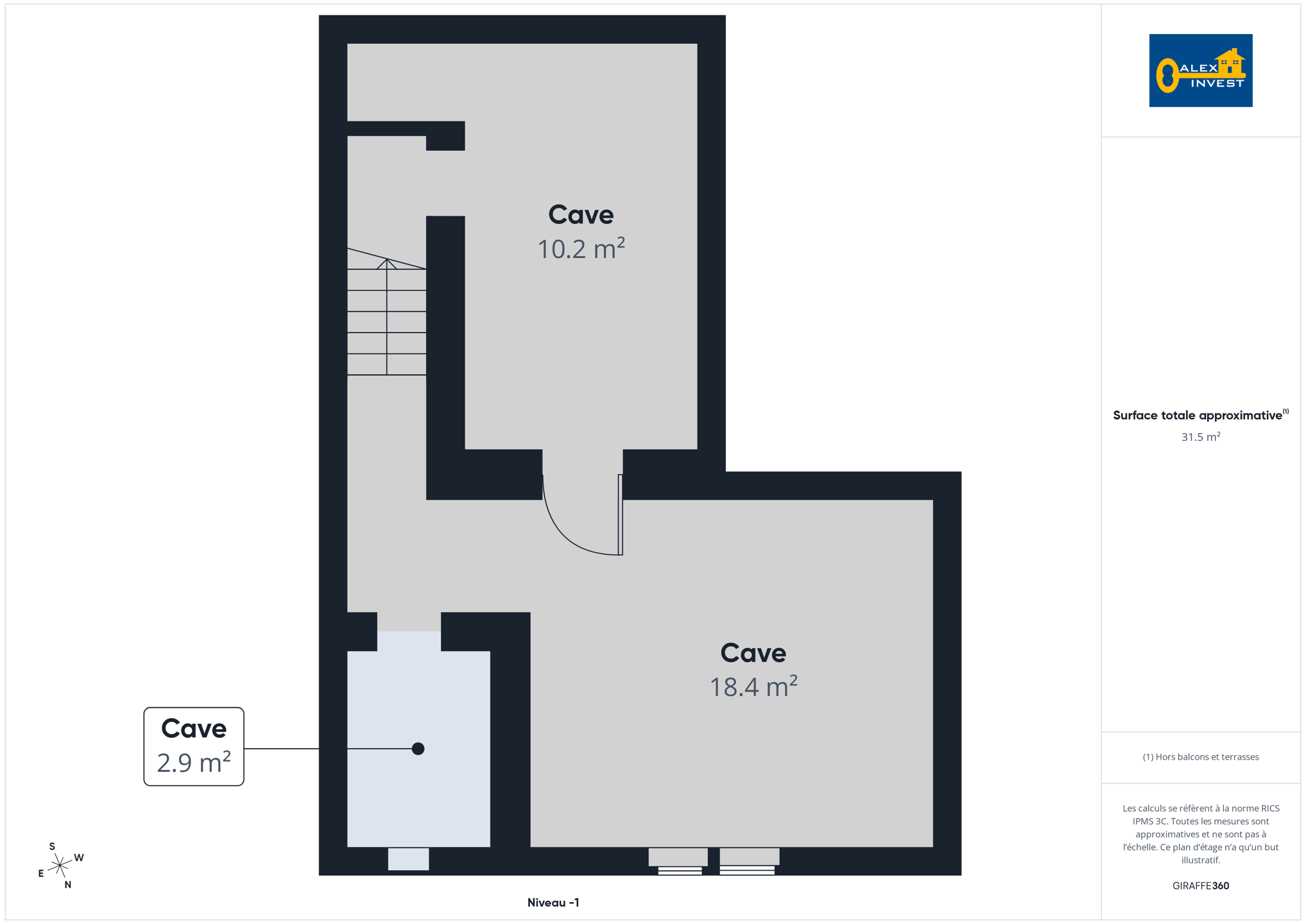 => À l’entre-sol se trouvent une chambre d’environ 13 m² ainsi qu’une salle de douche privative avec WC.