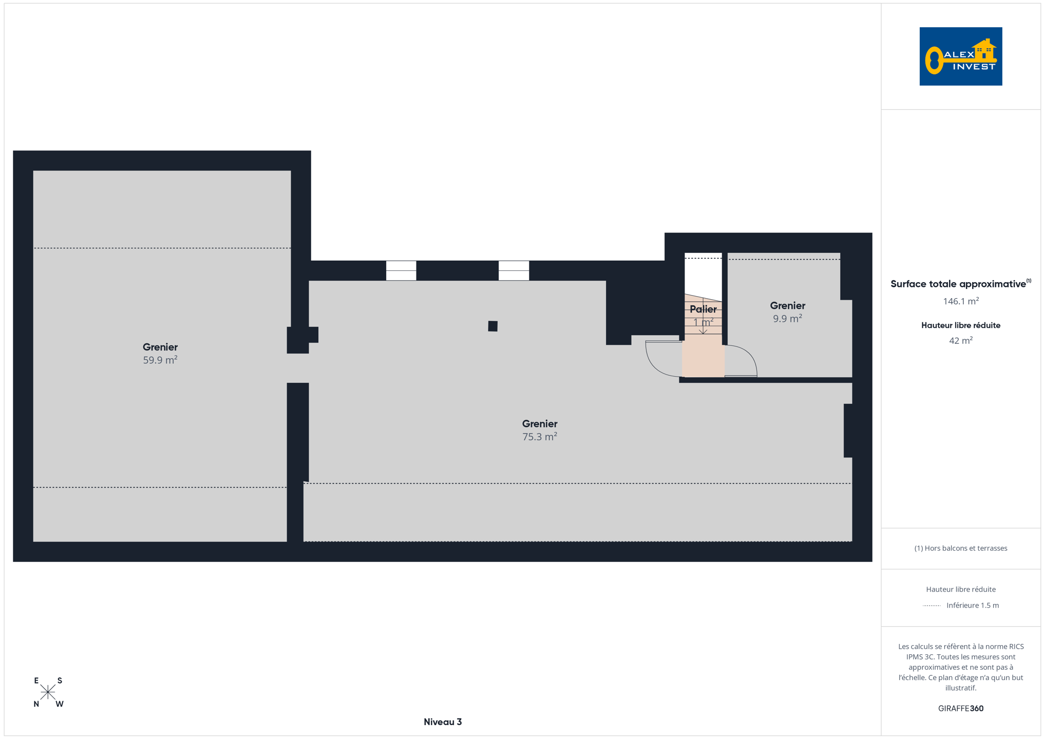 => Au 2ème étage, un GRENIER AMENAGEABLE d’environ 146 m² offre un potentiel supplémentaire très intéressant.