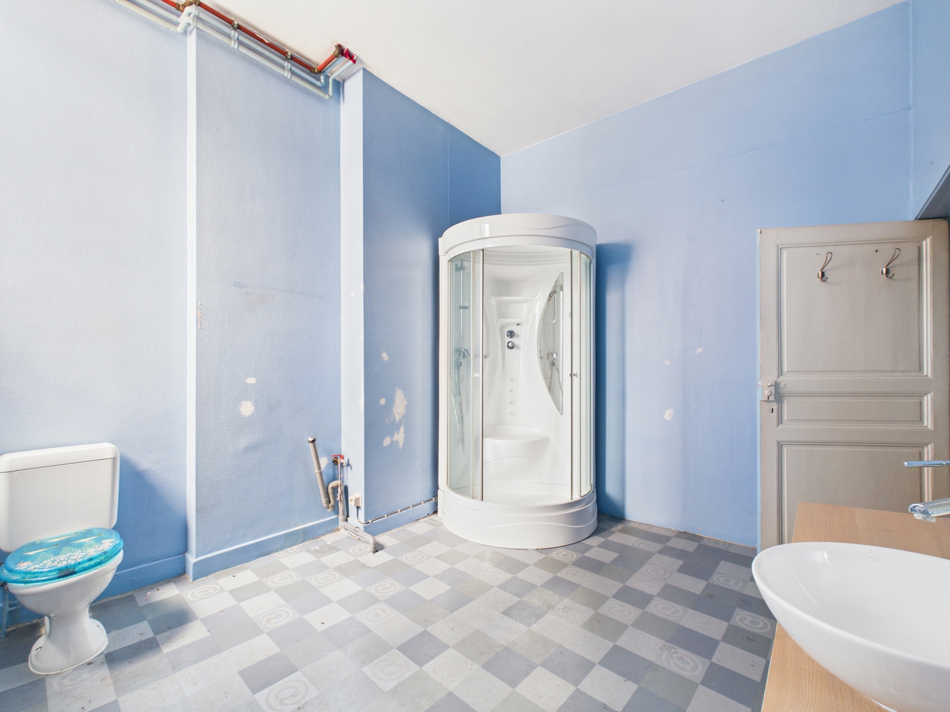 => Le bâtiment dispose également d’un appartement spacieux d’environ 196 m². Celui-ci se compose d’un hall d’entrée avec WC séparé, puis, à l’étage, d’un vaste hall, d’un séjour lumineux de ± 47 m², d’un hall de nuit, d’une cuisine avec espace dinatoire de ± 13 m², d’une buanderie, de 3 chambres de ± 24, 16 et 25 m², ainsi que d’une salle de douche avec WC.