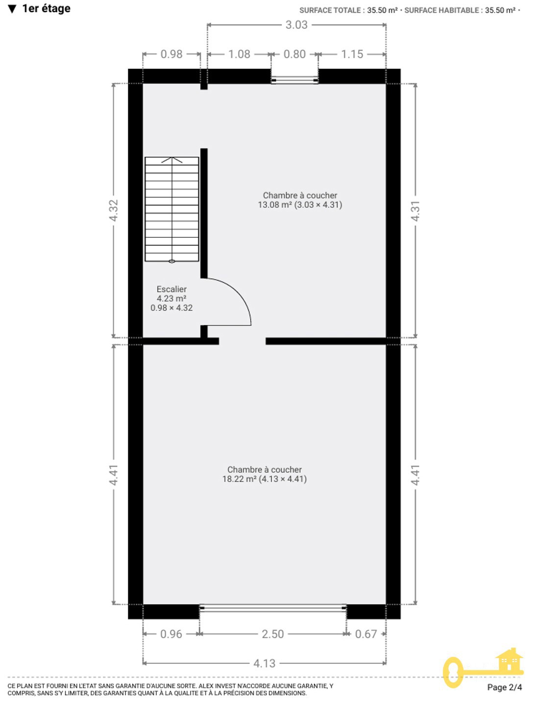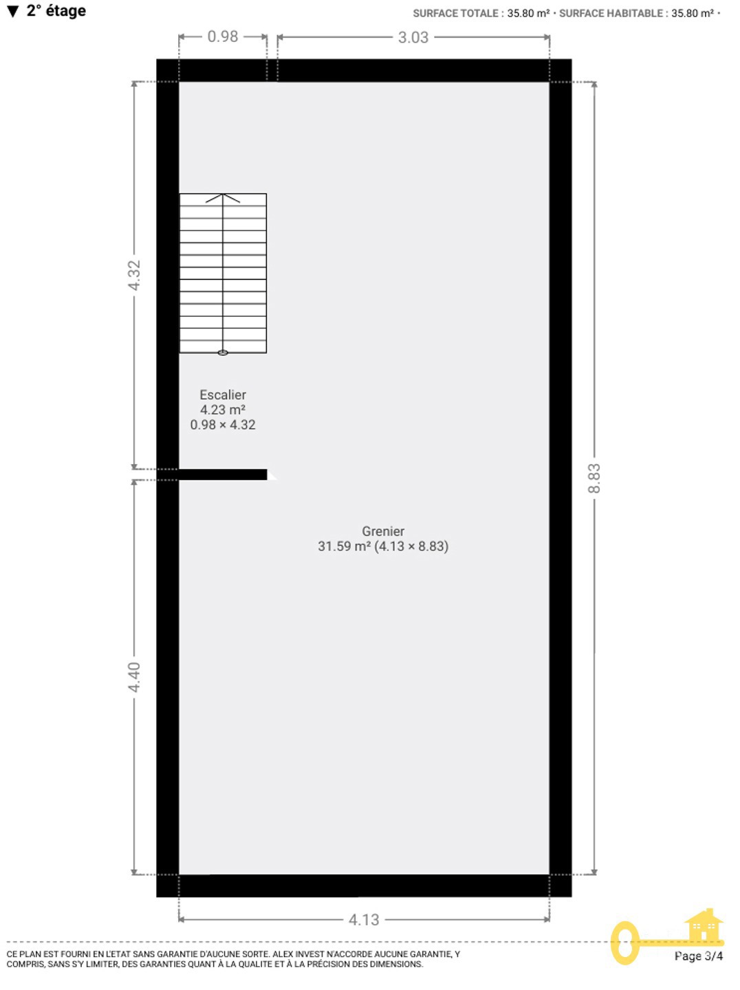 2ème ETAGE: grenier aménageable accessible par un escalier fixe.