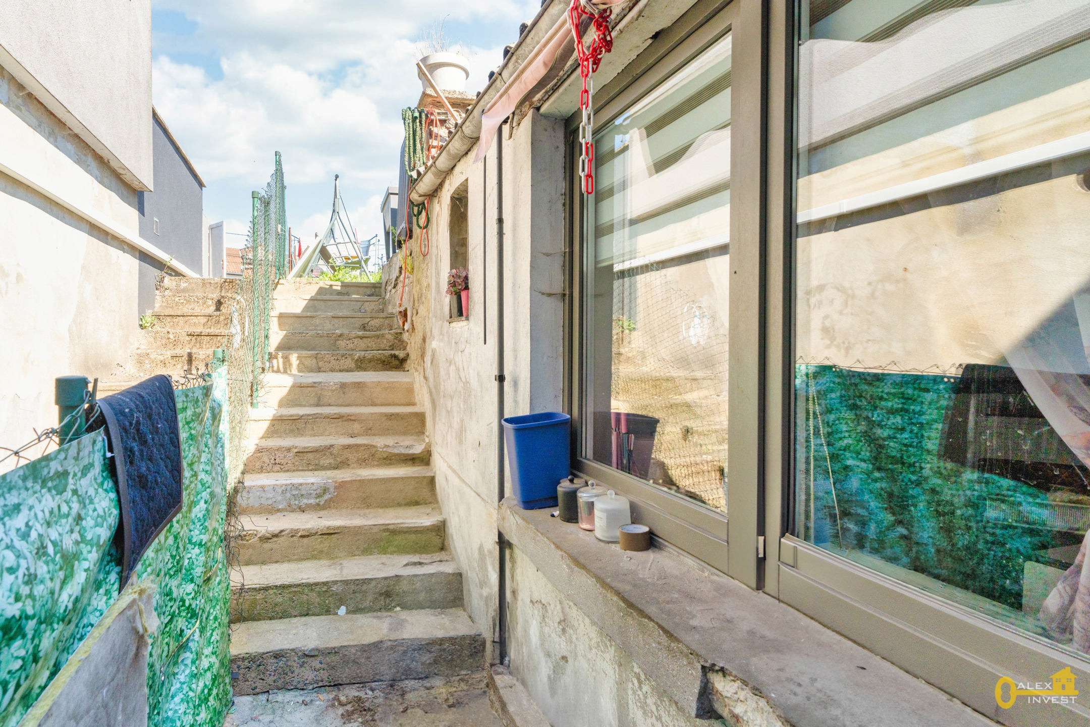 Extérieur: petit JARDIN avec terrasse (+-6m2) accessible par des escaliers.