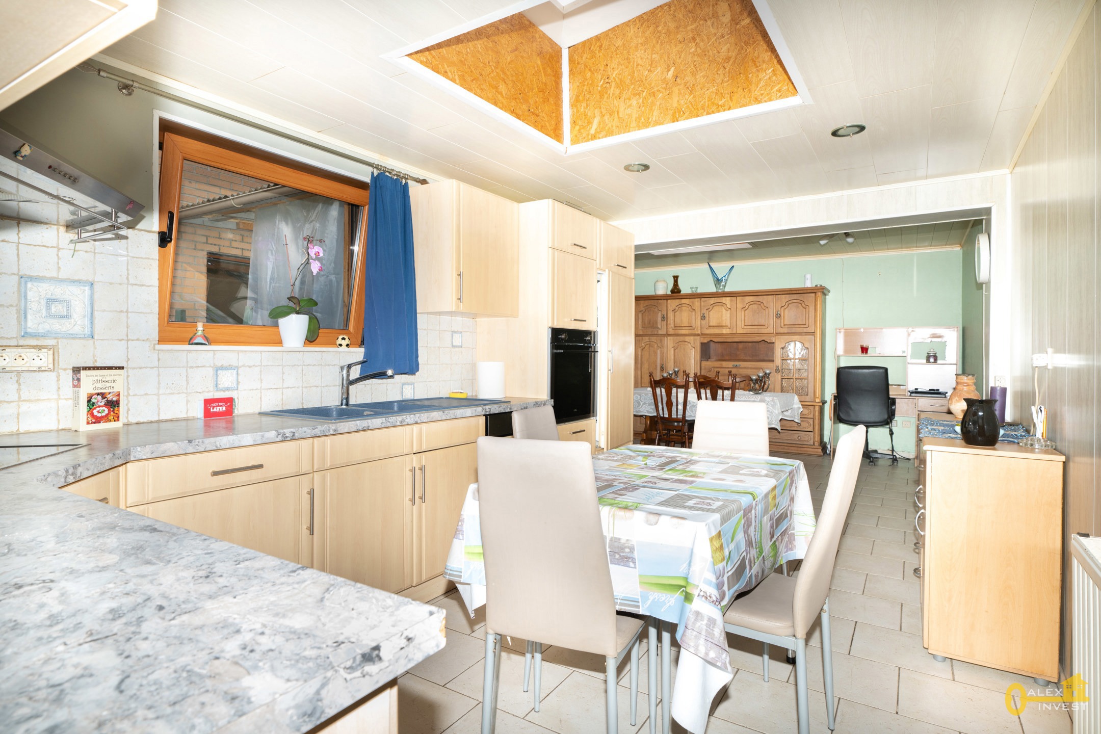 Grande salle à manger de +-19m², salon, cuisine super-équipée, BUANDERIE, wc, salle de bain avec douche et wc, 2 chambres dont l'une avec un espace grenier accessible par une échelle de meunier rabattable.